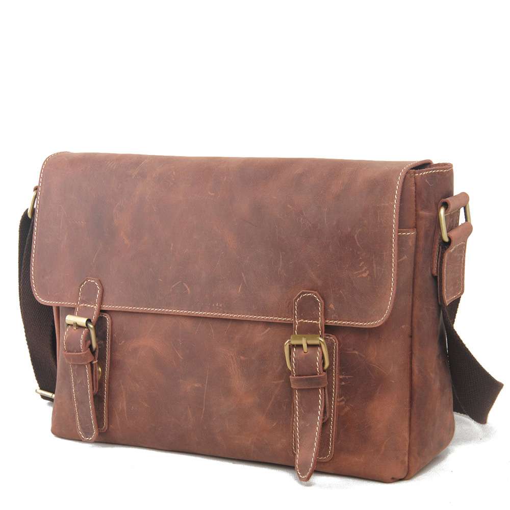 獨特的歐美風復古時尚設計,頭層牛皮男士真皮包包 瘋馬皮包包