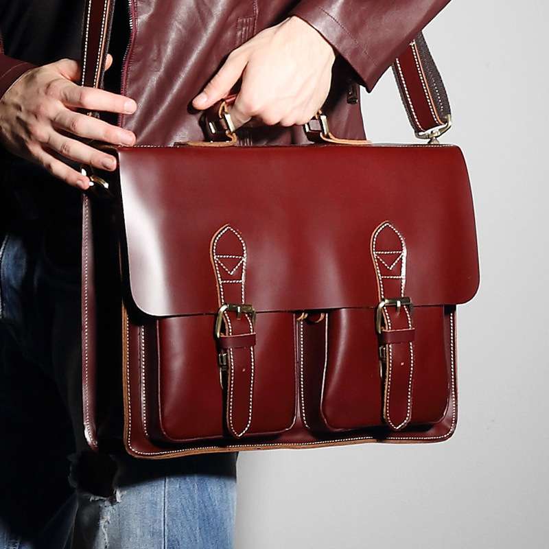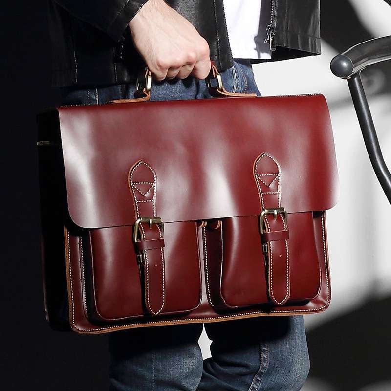 進口油蠟牛皮手提包 復古風潮時尚設計,真皮商務包包