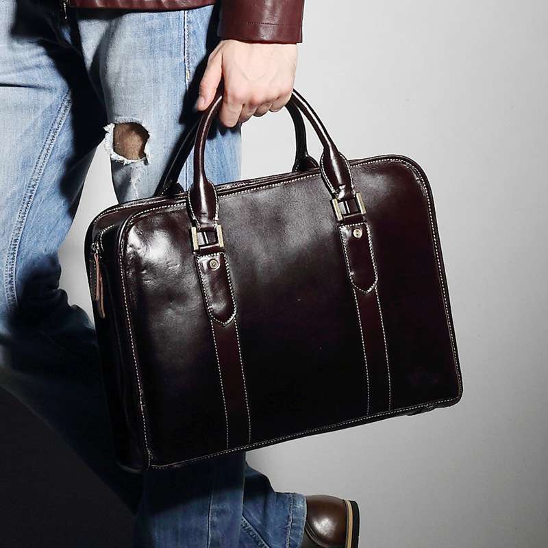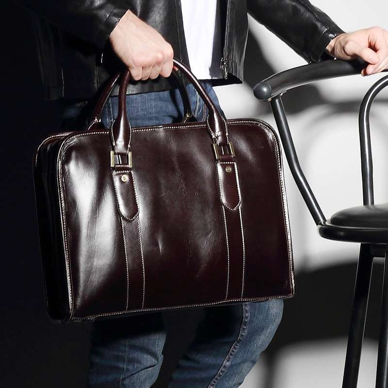 進口油蠟牛皮手提包 復古風潮時尚設計,真皮商務包包