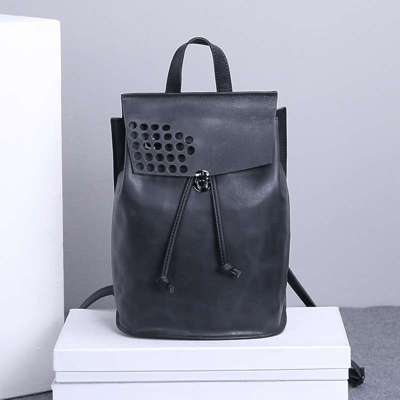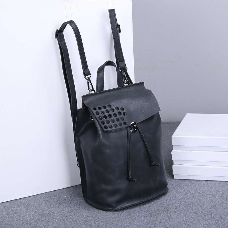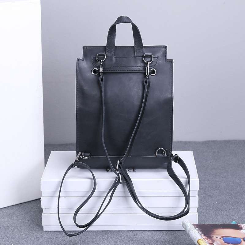 新款男女通用學院風真皮後背包 商務真皮雙肩背包