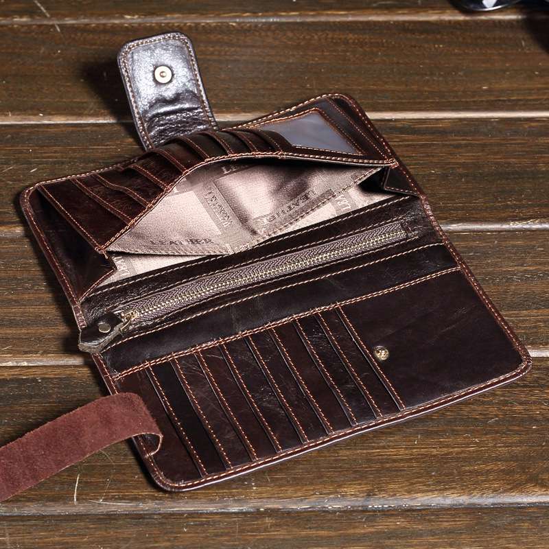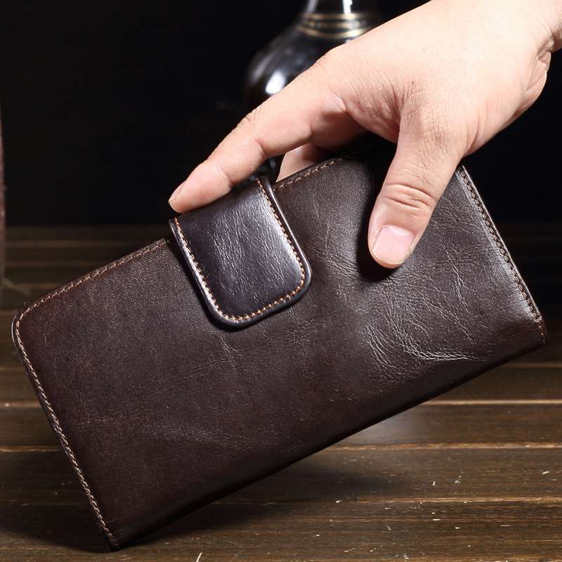 頭層牛皮長款皮夾 復古真皮個性獨特長款錢包 真皮皮夾