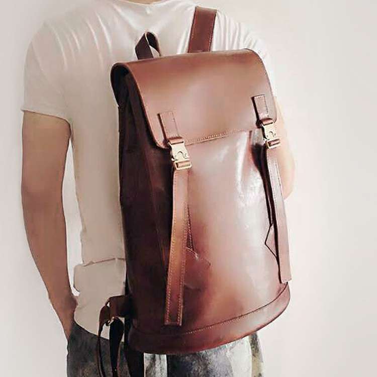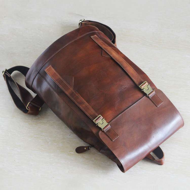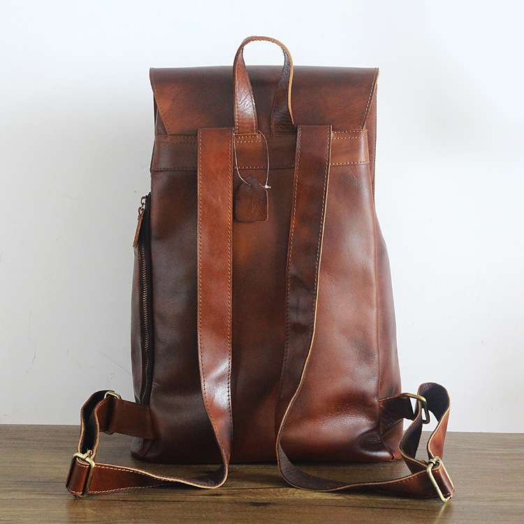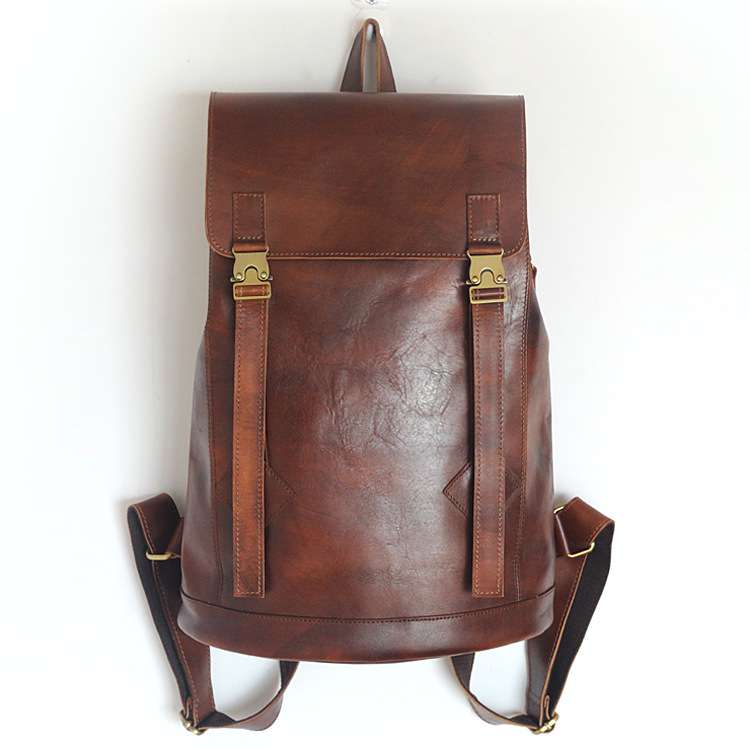 韓版復古頭層牛皮後背包 高檔原創復古手工擦色後背包