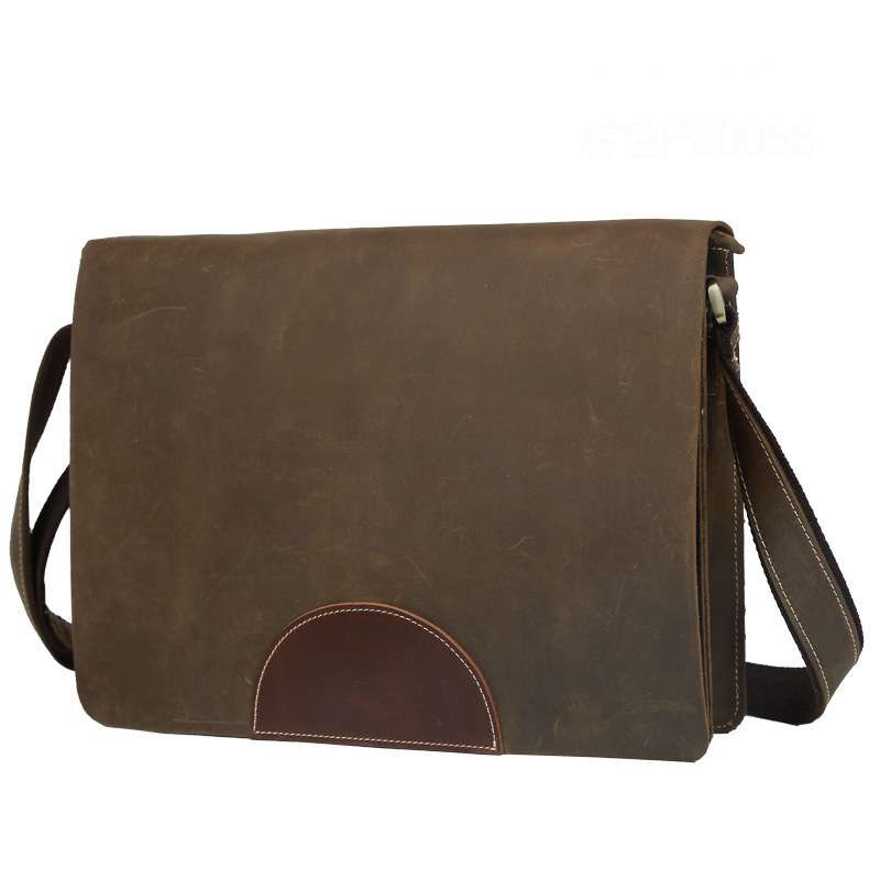 英倫復古風頭層牛皮斜背包 休閒瘋馬皮肩背包