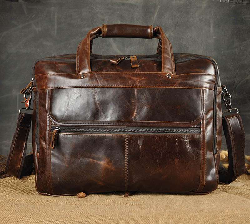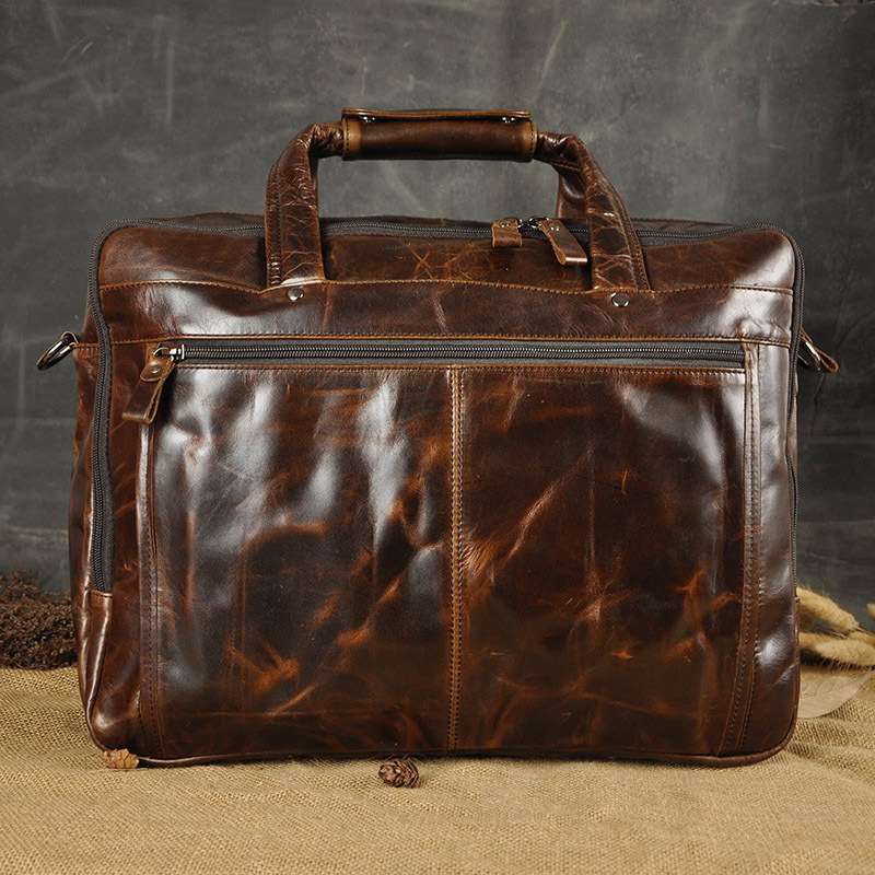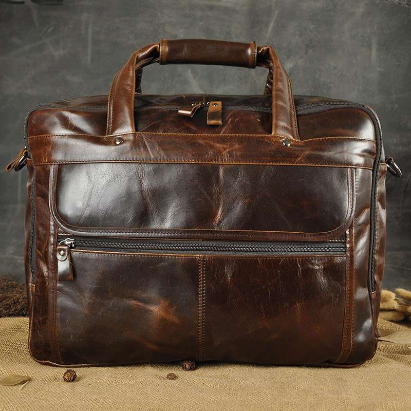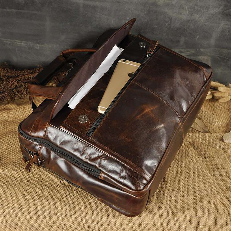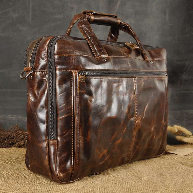 商務休閒真皮筆電包 復古油蠟牛皮公文包 時尚斜背包