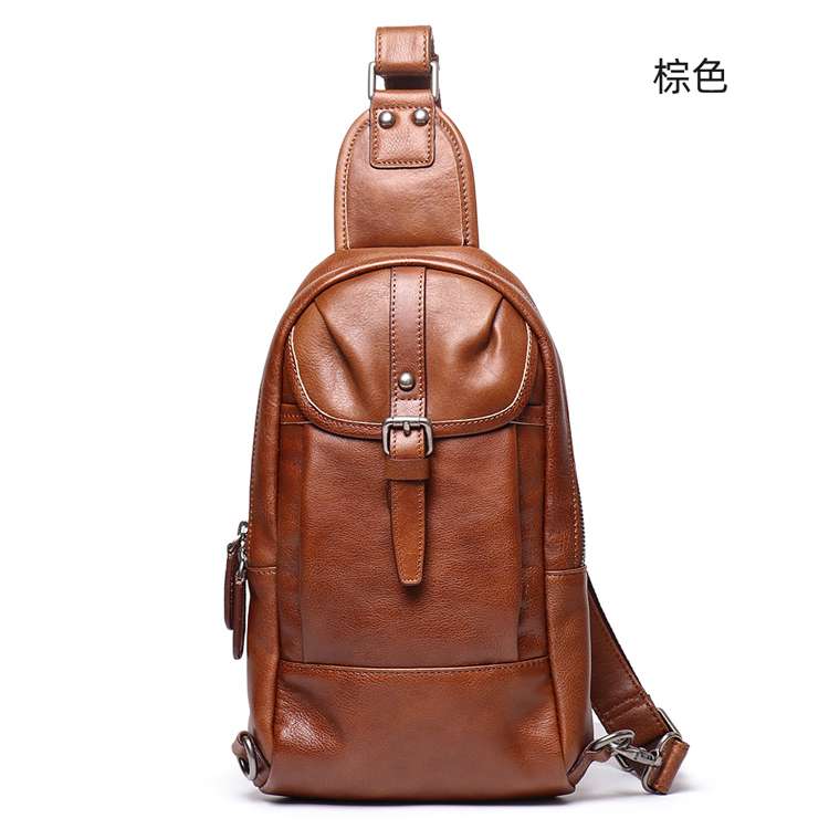 潮流的頭層牛皮胸包 男女真皮胸包 型男潮女的必備真皮包包