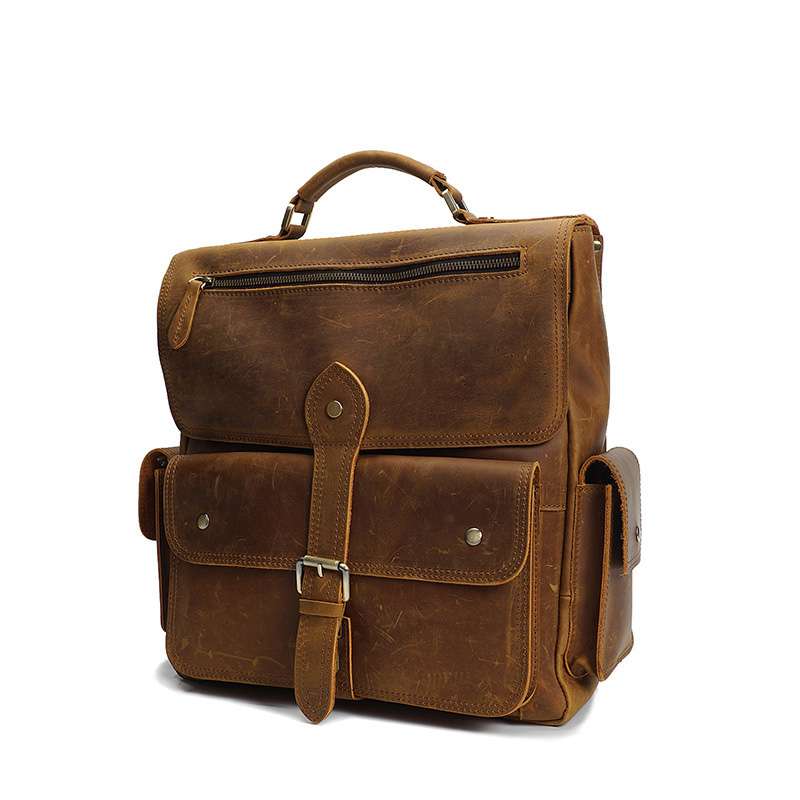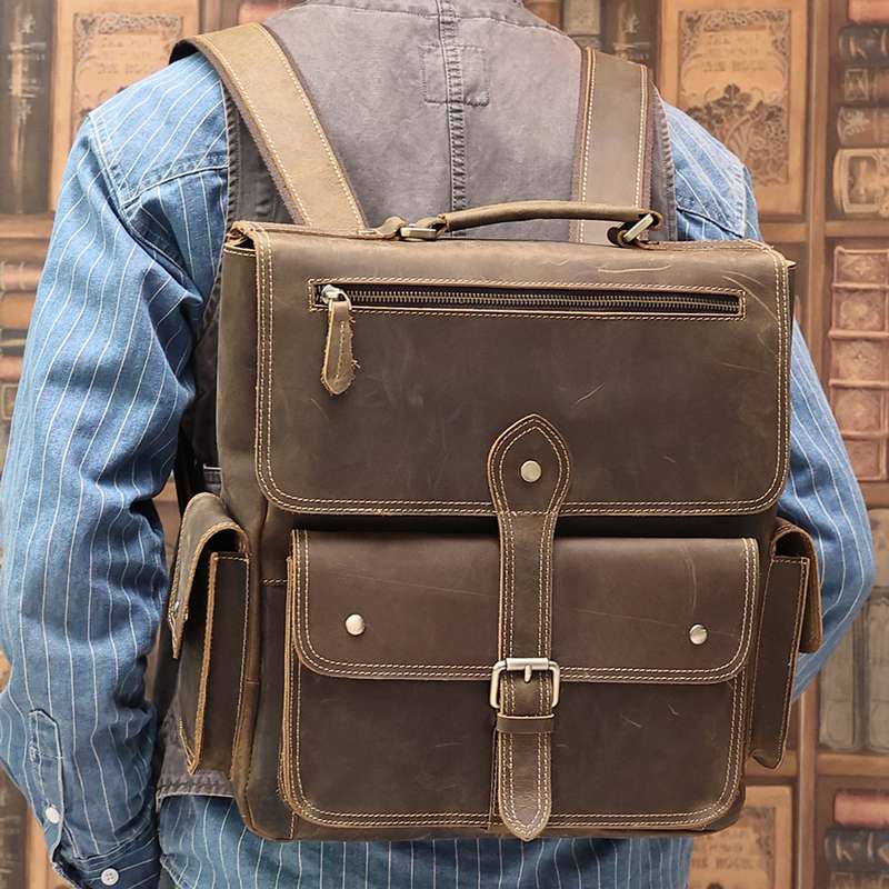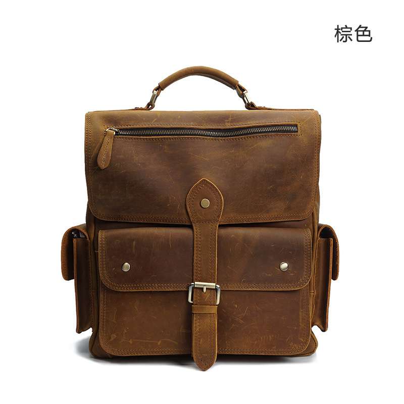 復古瘋馬皮後背包 多功能瘋馬皮雙肩包