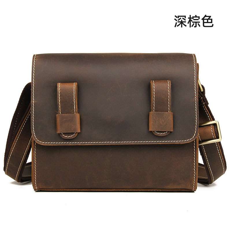 復古頭層瘋馬皮斜挎包 真皮女包 休閒側背包