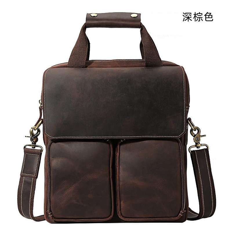 英倫風復古瘋馬牛皮手提包,男士公事包 高檔頭層牛皮真皮包包