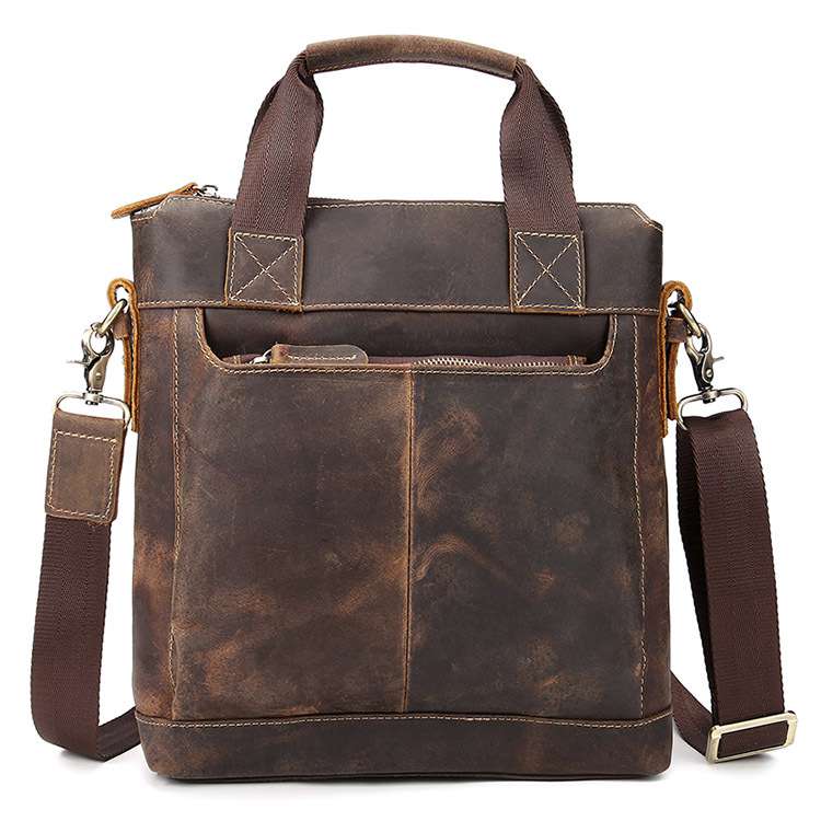 簡約復古瘋馬牛皮手提包,男士商務公事包 頭層牛皮真皮包包