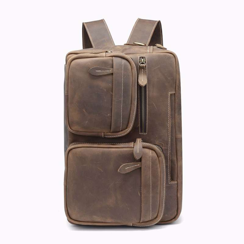 強大的多功能旅行包包,復古真皮後背包 男女通用雙肩背包