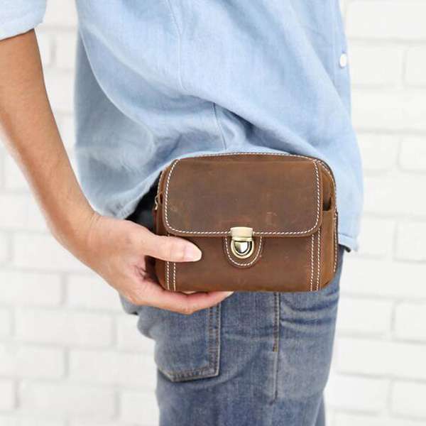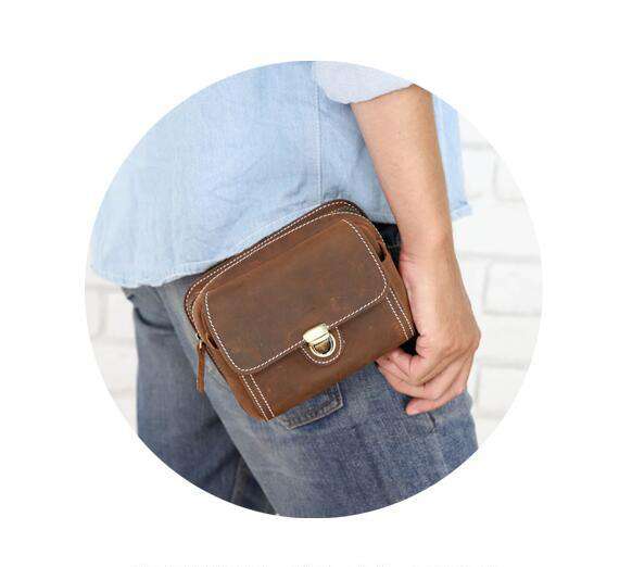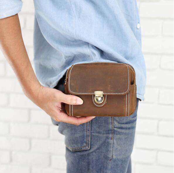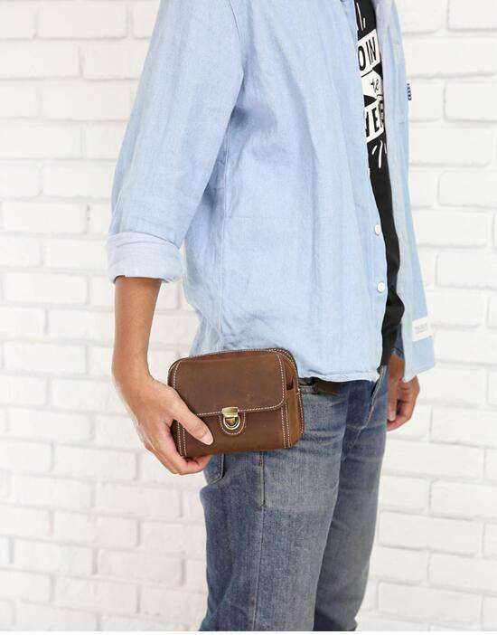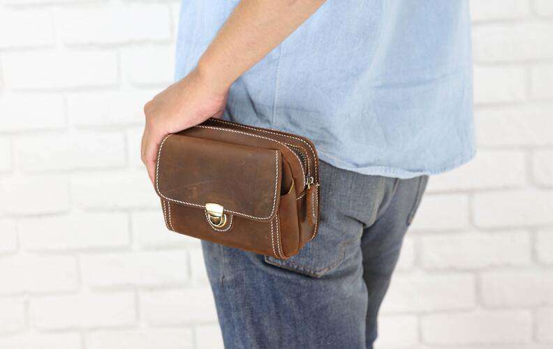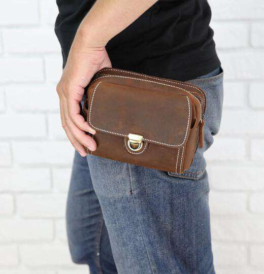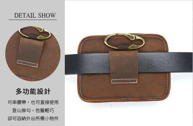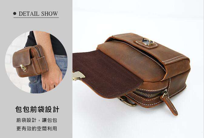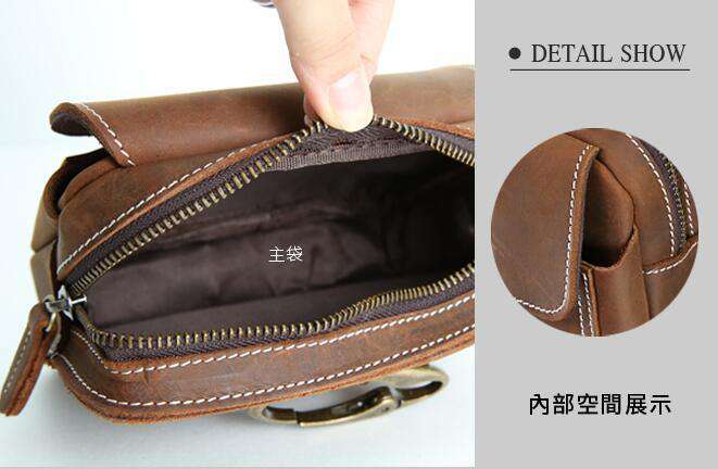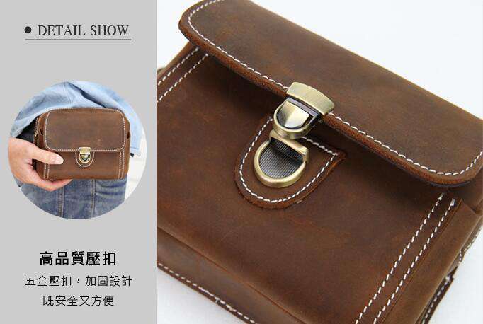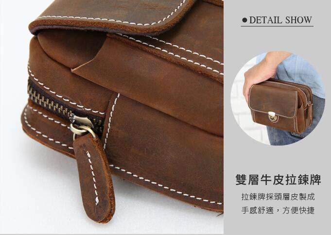 瘋馬皮男士腰包,休閒手機包,頭層牛皮腰包