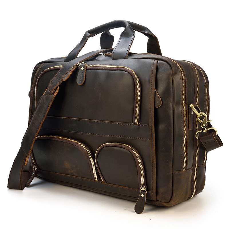 手工製作真皮包包 大容量商旅手提包