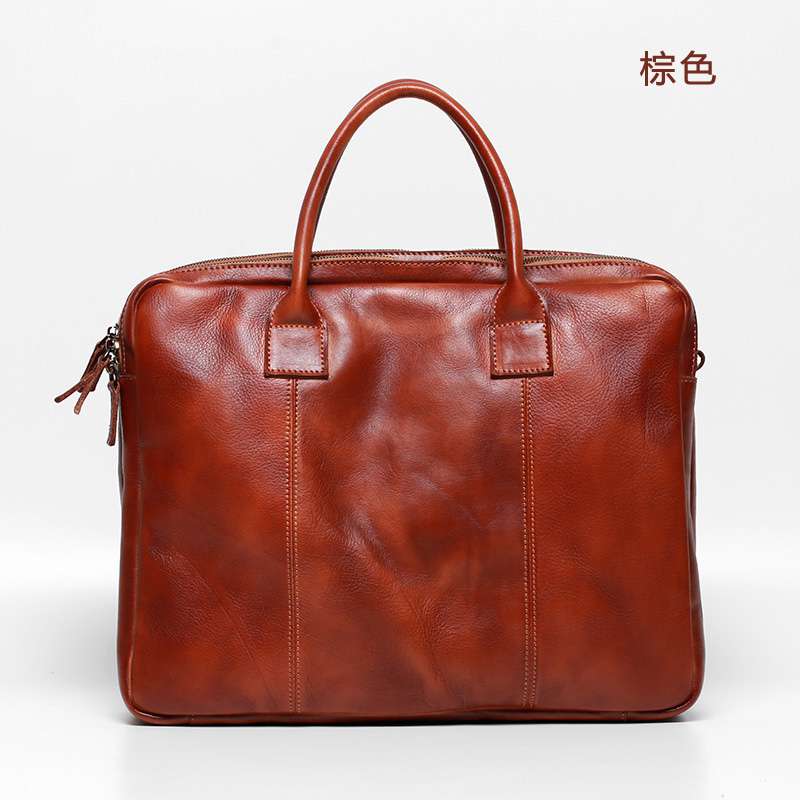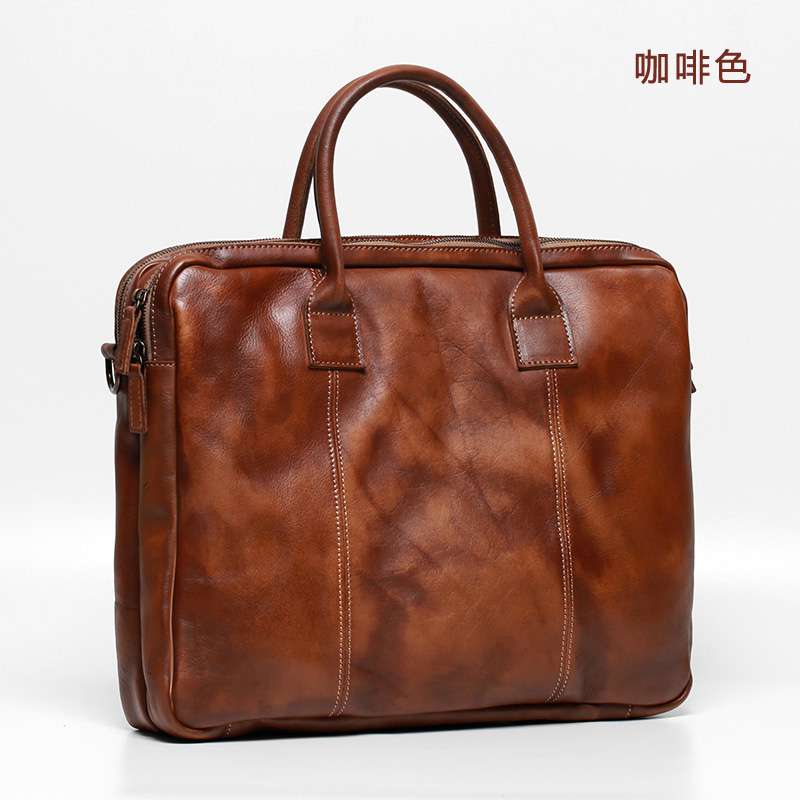 復古純手工擦色包包 牛皮手提包 頭層牛皮商務公事包