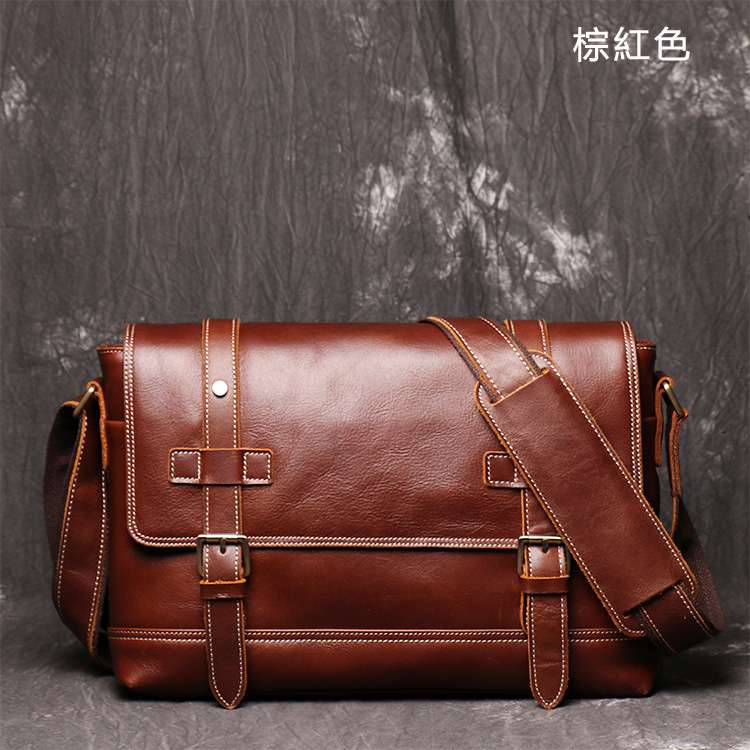 復古翻蓋瘋馬皮斜背包 簡約頭層牛皮側背包 商務休閒包