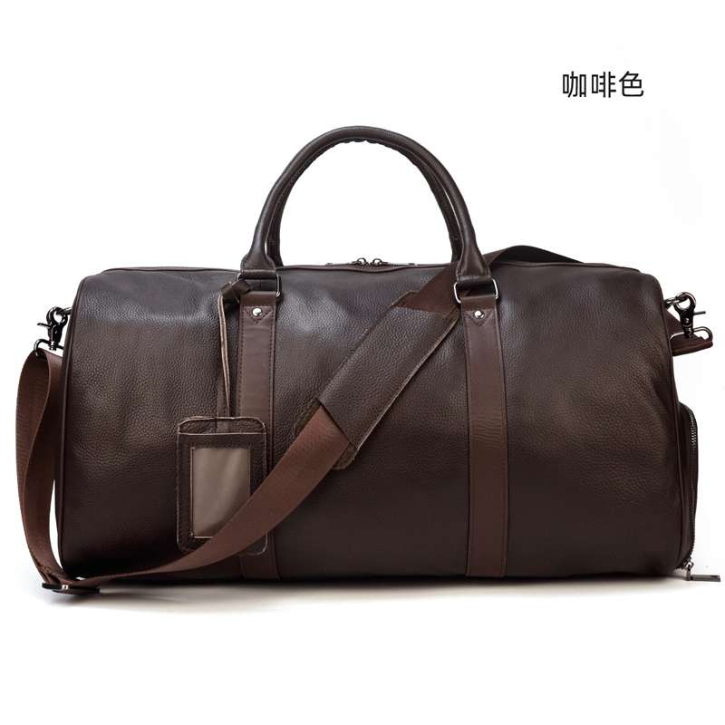 超大容量帶鞋位運動行李包 頭層牛皮手提包,