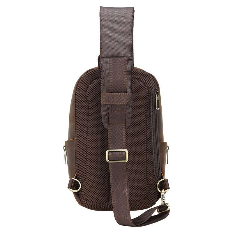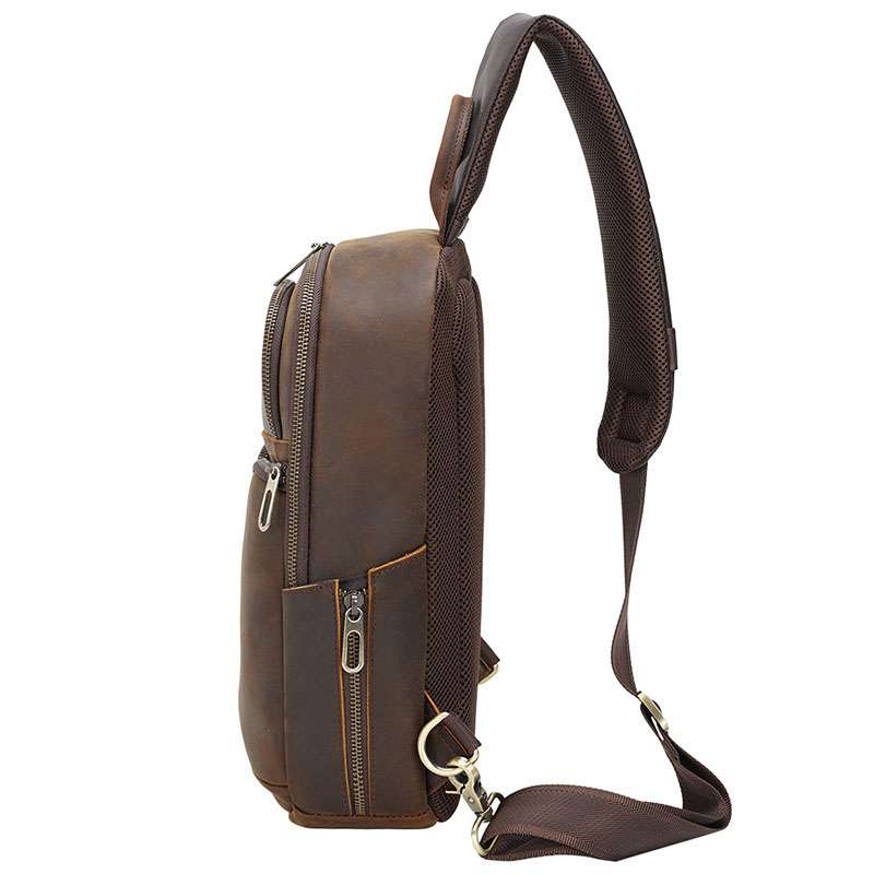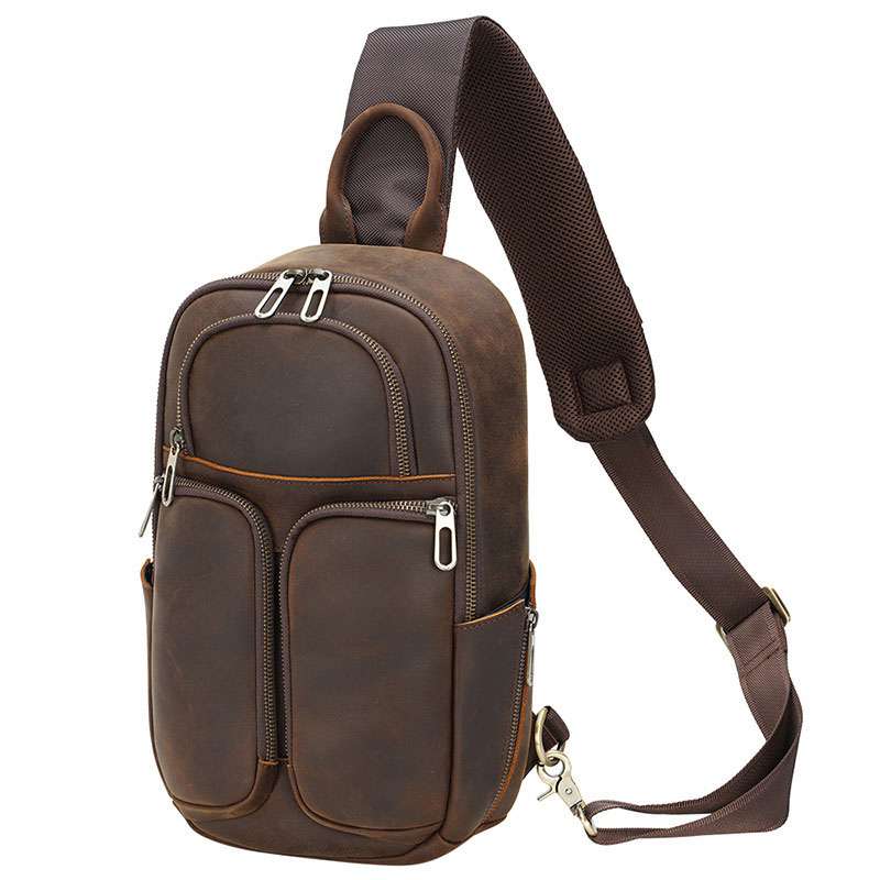 復古瘋馬皮胸包,多功能真皮包包,