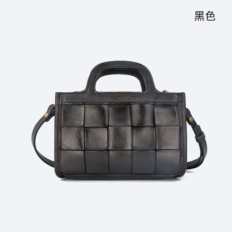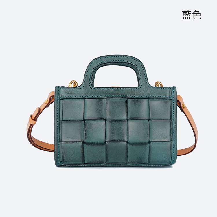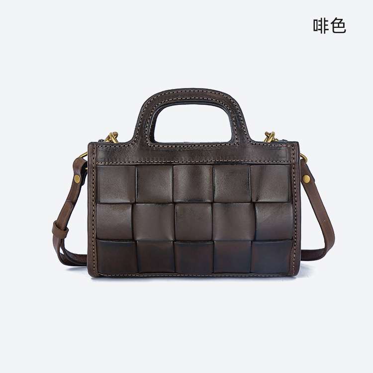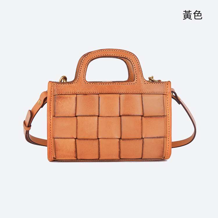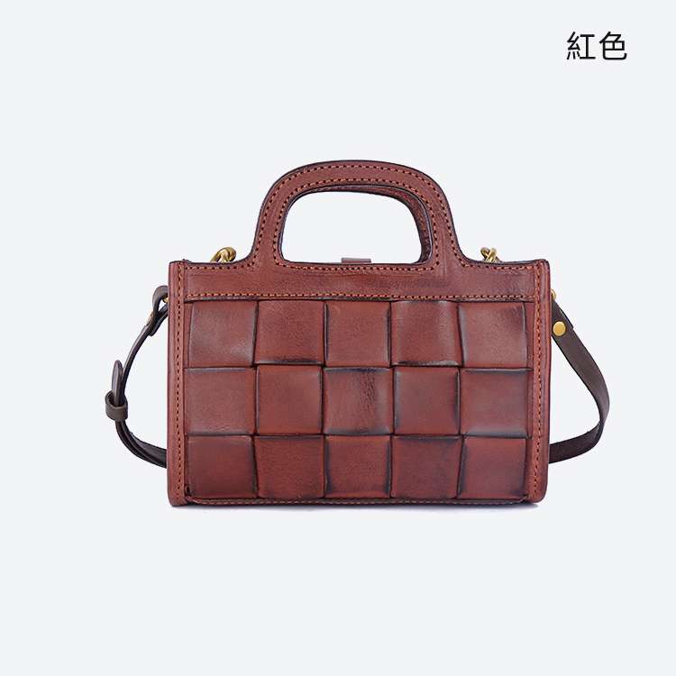 復古植鞣牛皮手工編織包 頭層牛皮側背包