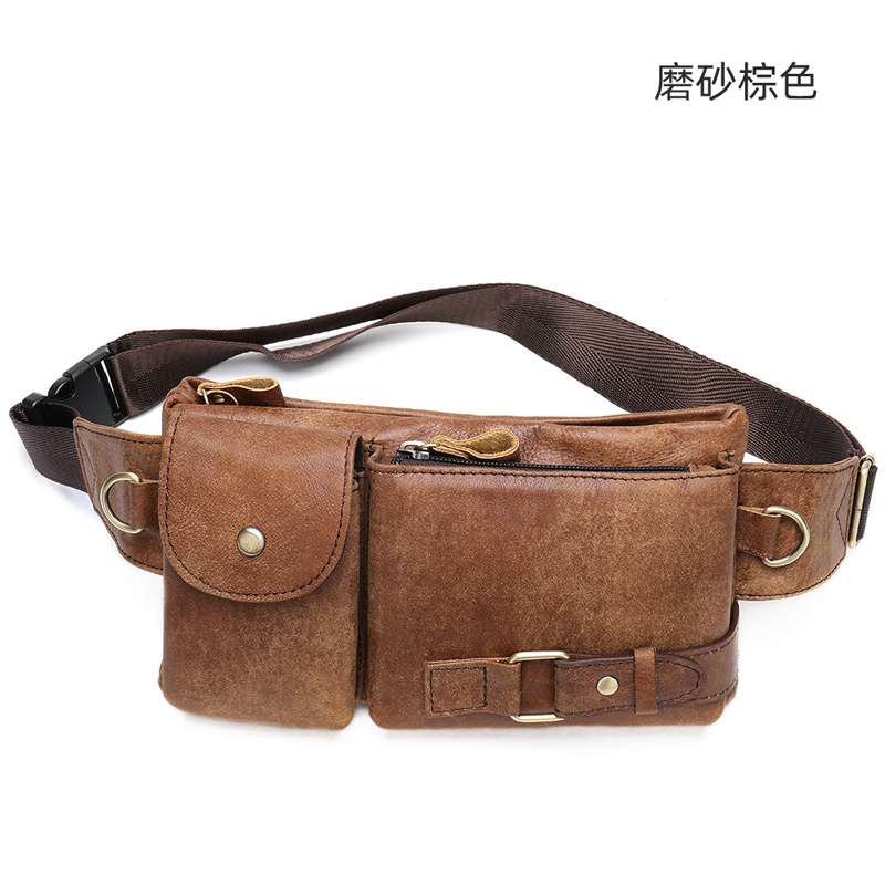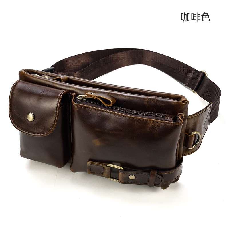 頭層牛皮腰包 男士真皮斜挎包 男式肩背包