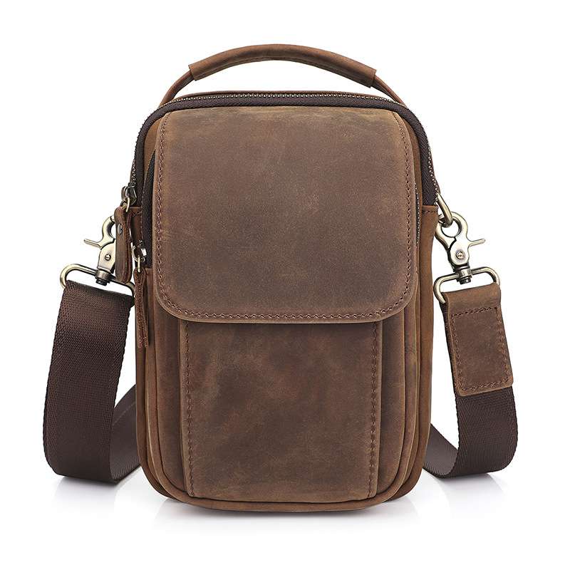 瘋馬皮耐用男式側背包 牛皮單肩包 休閒逛街小包包