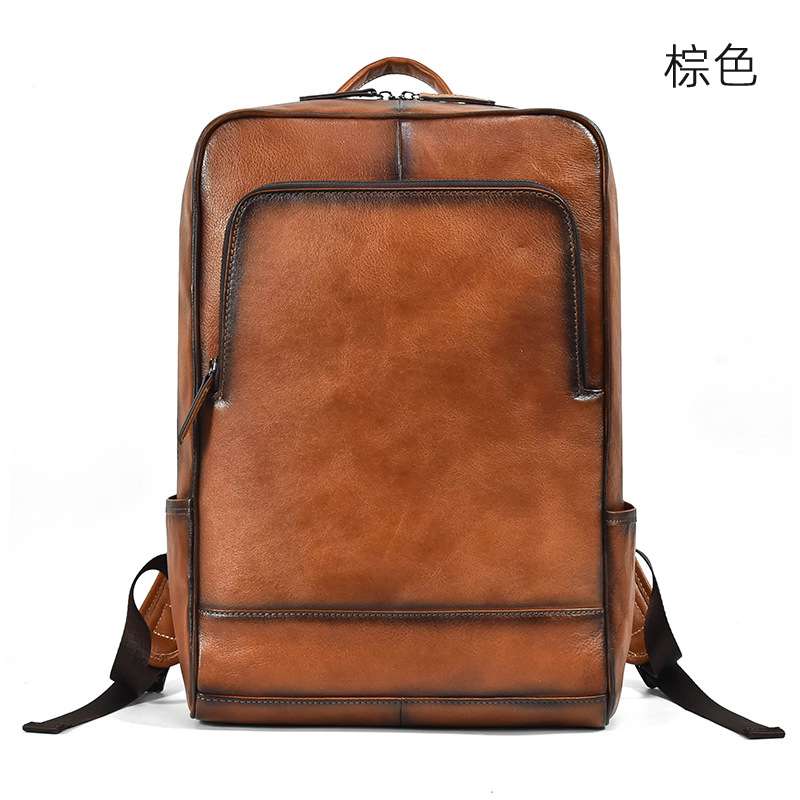 復古頭層牛皮後背包,擦色植鞣革旅行包