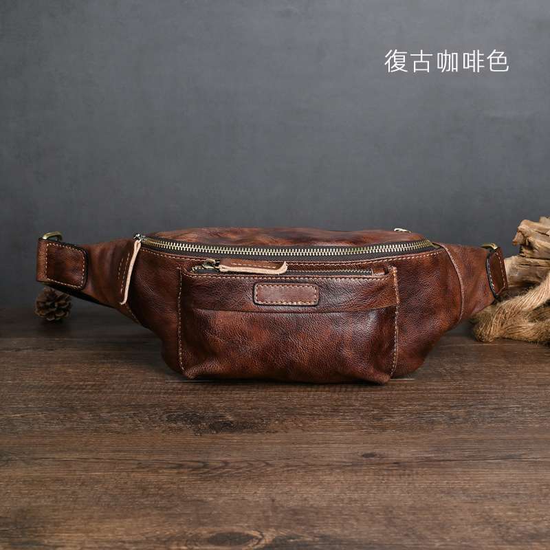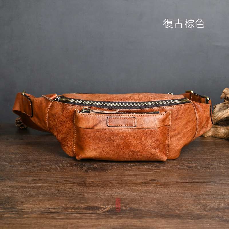 植鞣革擦色真皮胸包 男士頭層牛皮