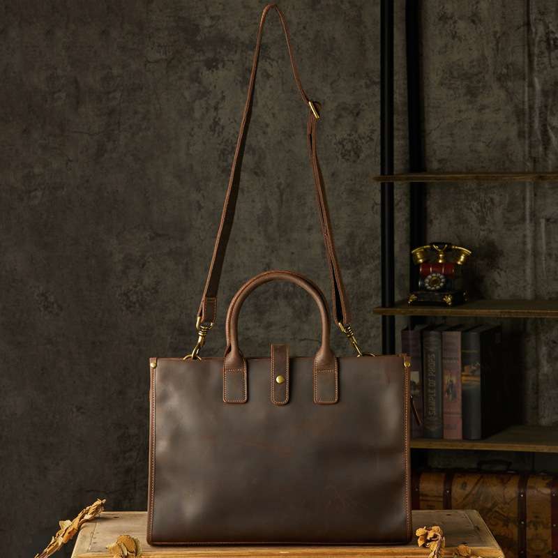 復古瘋馬皮手提包 商務公事包筆電包,男士真皮手提手袋