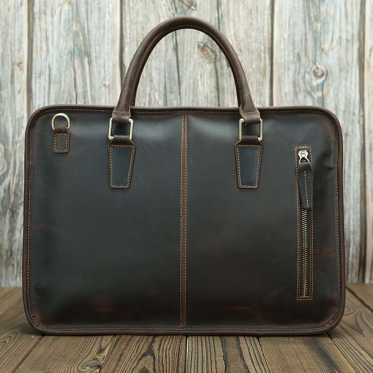 復古瘋馬皮手提包 商務公事包筆電包,男士真皮手提手袋
