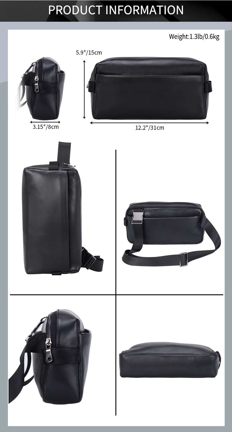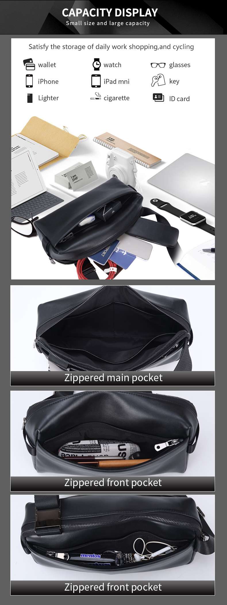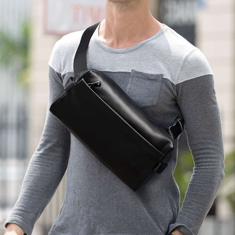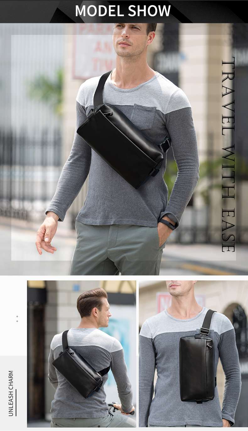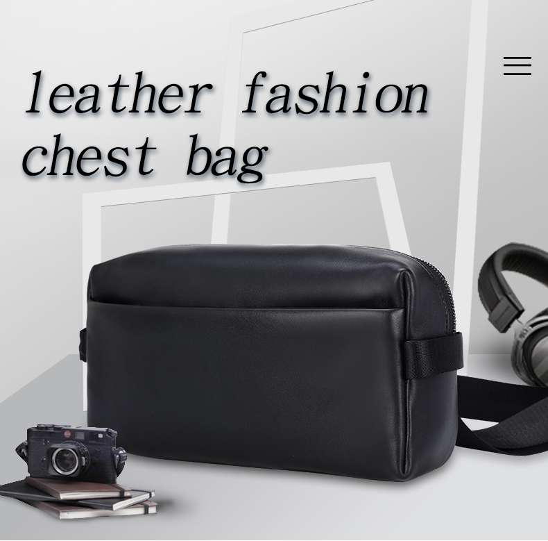 真皮多功能頭層納帕皮男士胸包 簡約斜背包