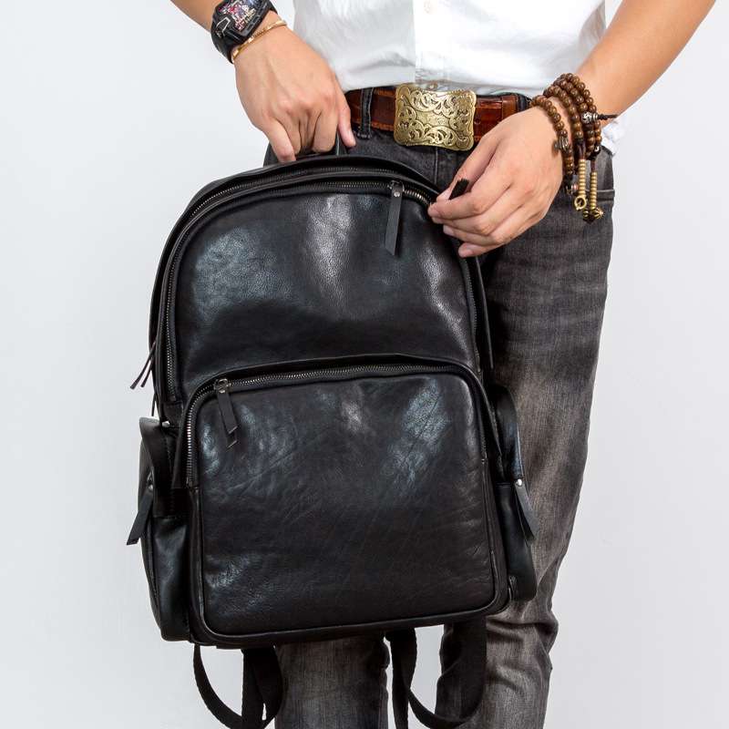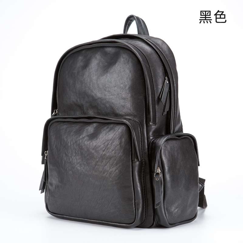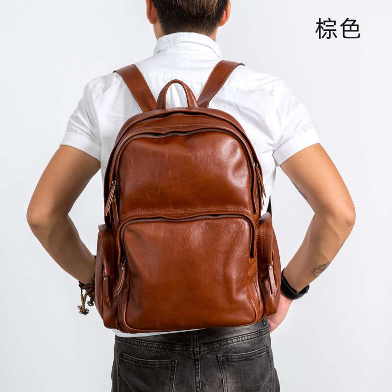 植鞣牛皮後背包 男士雙肩包 大容量書包 真皮大背包