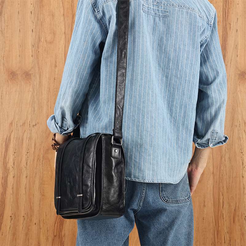 男式斜背包 植鞣皮手抓紋單肩包,真皮男包