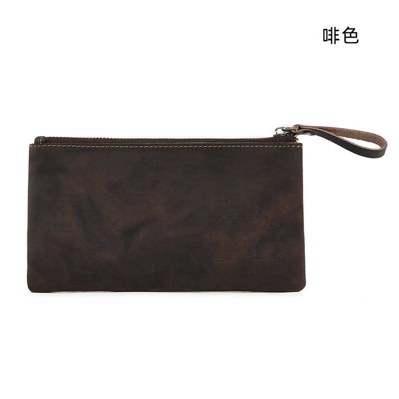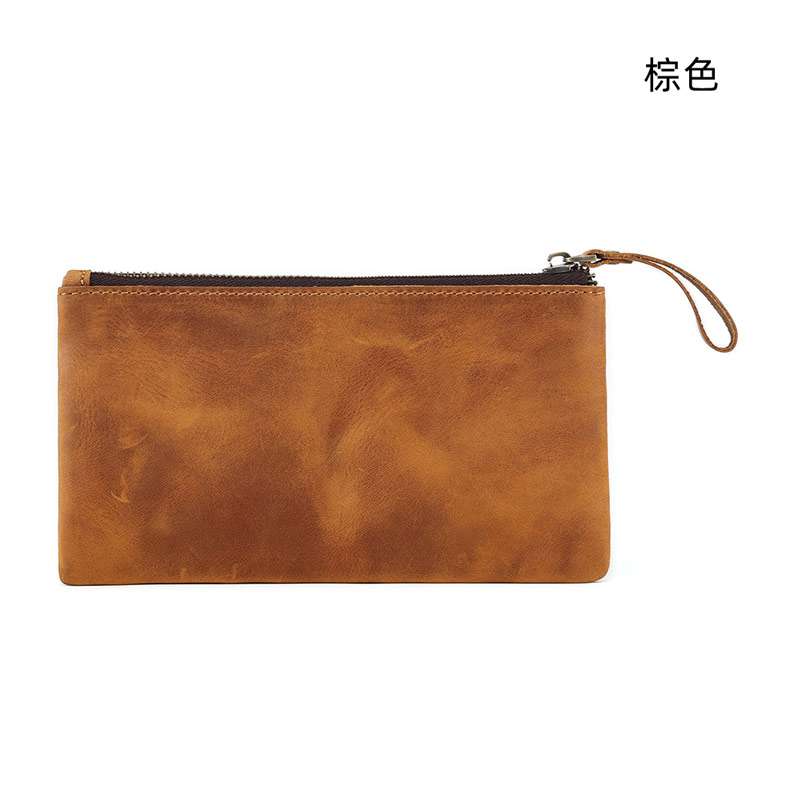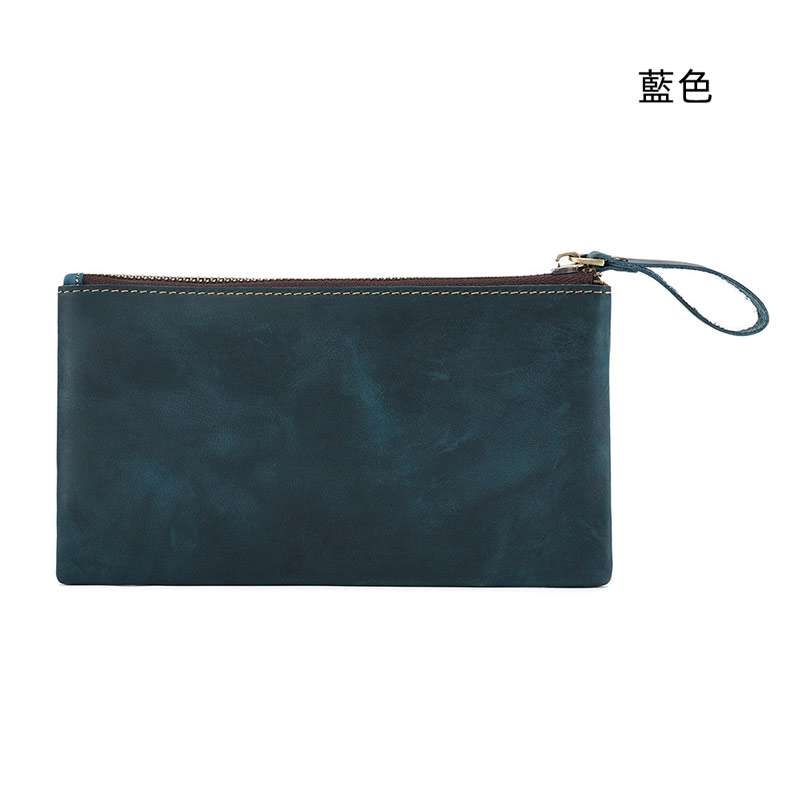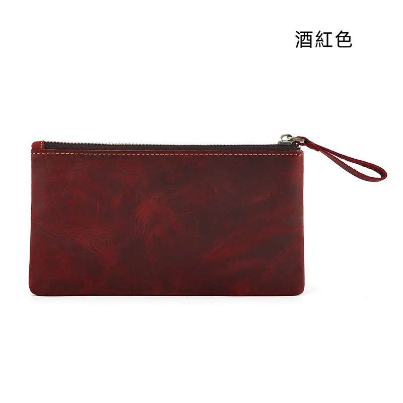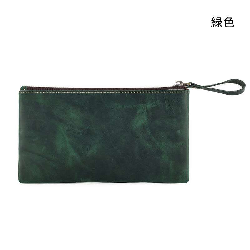 拉鏈眼鏡包鋼筆收納袋錢包 頭層牛皮皮夾 簡約長款皮夾