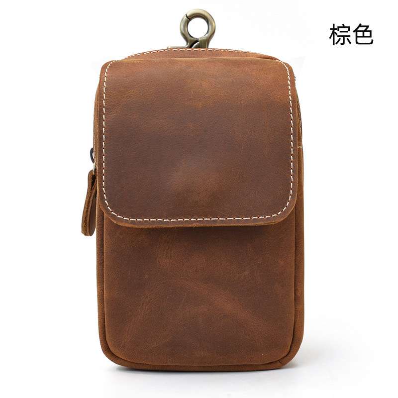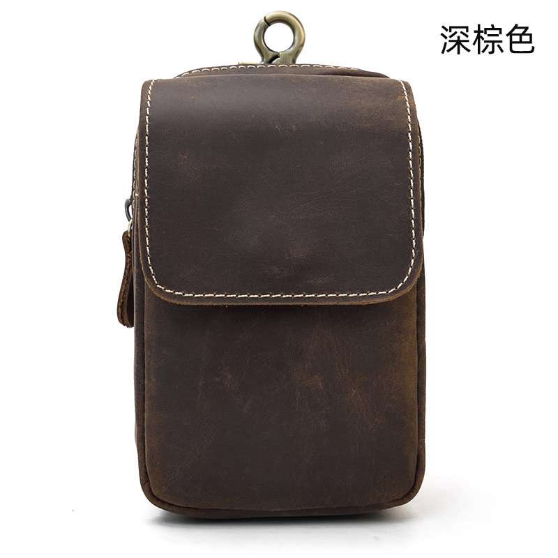 復古瘋馬皮男士腰包,休閒手機包,頭層牛皮腰包