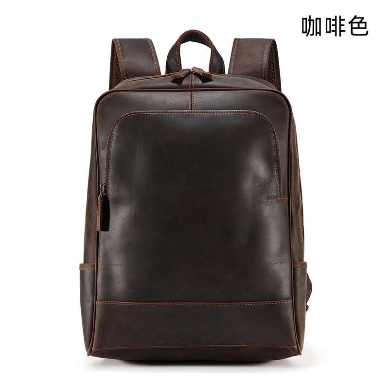 復古瘋馬皮雙肩包,頭層牛皮旅行背包學生書包