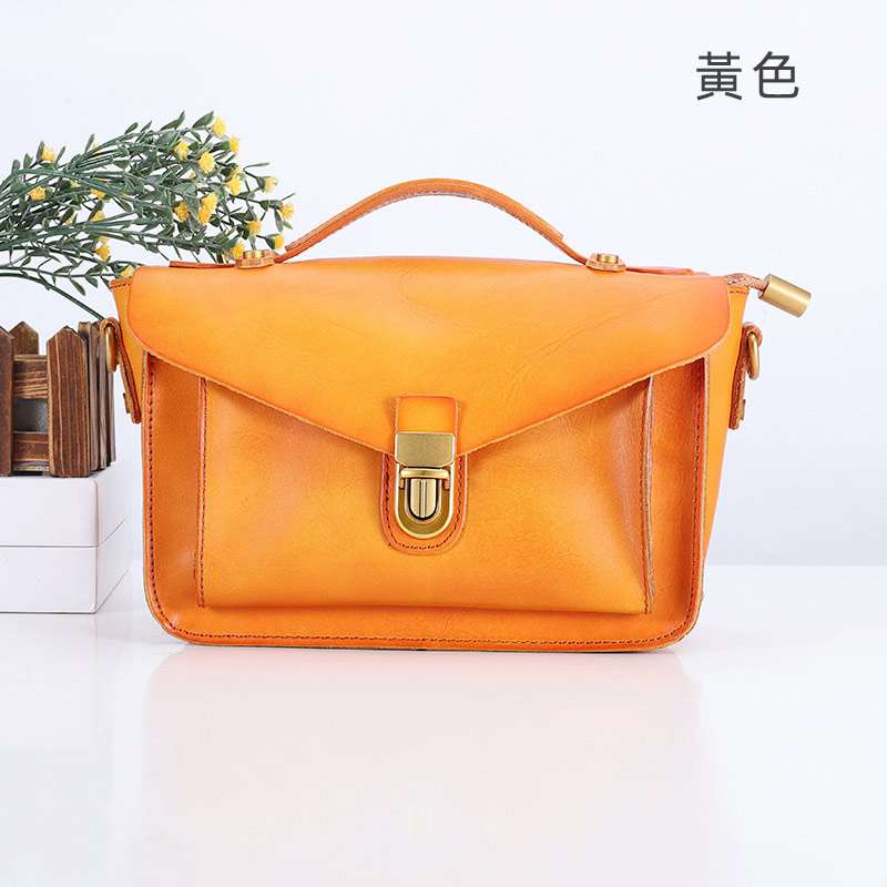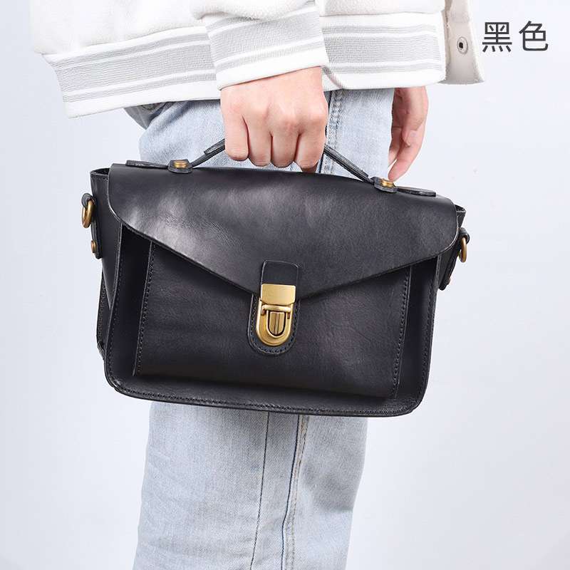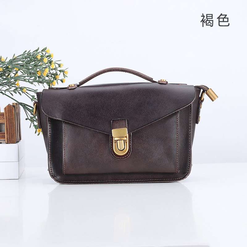 復古植鞣牛皮斜背包 韓式頭層牛皮小背包