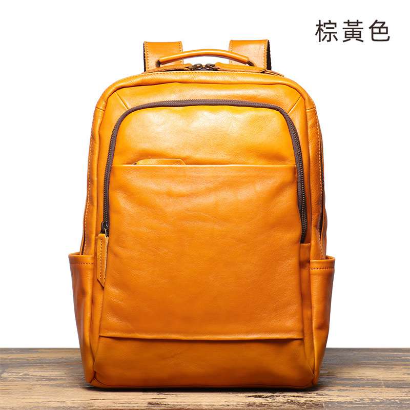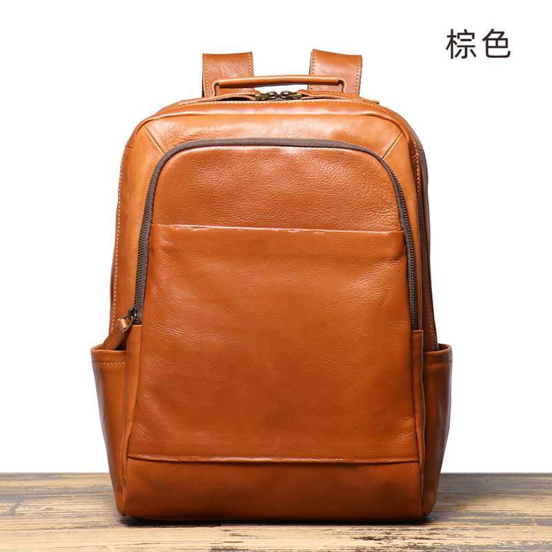 男士真皮商務15吋筆電包 女式牛皮雙肩背包