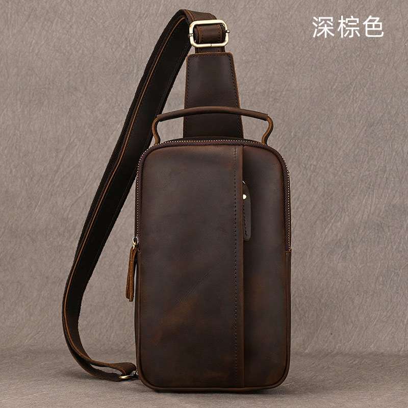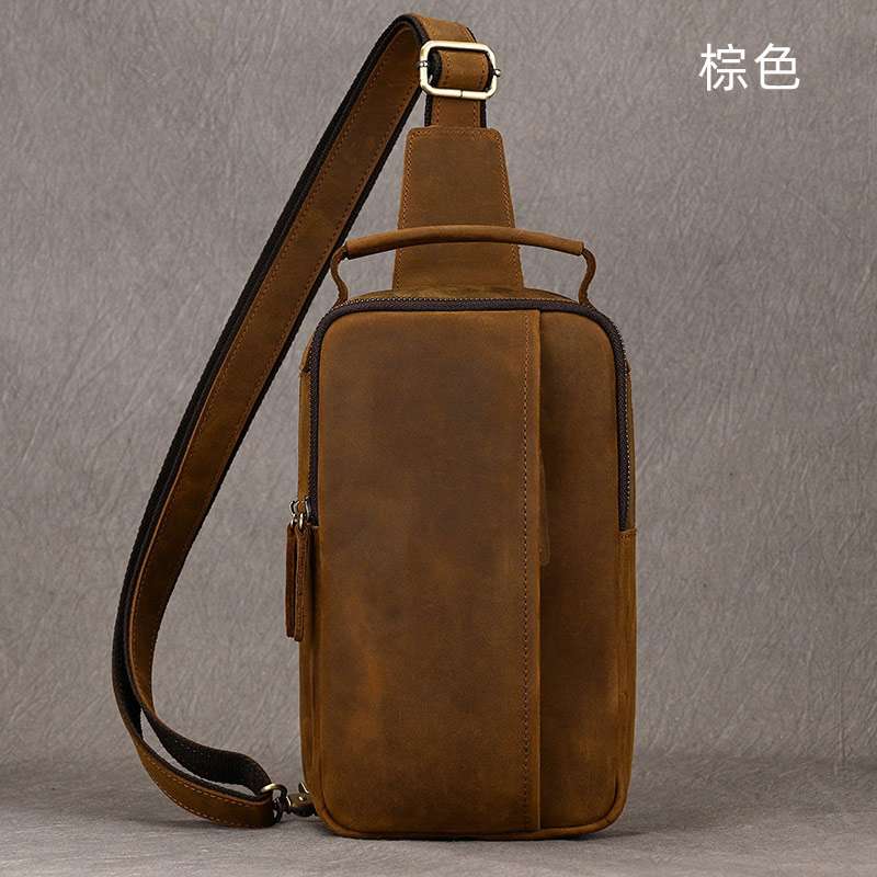 真皮胸包 瘋馬皮男士戶外休閒包