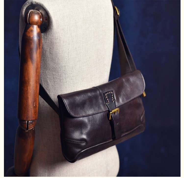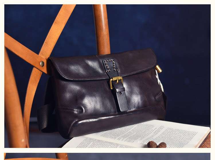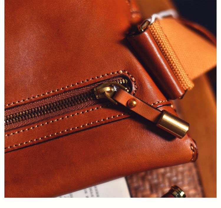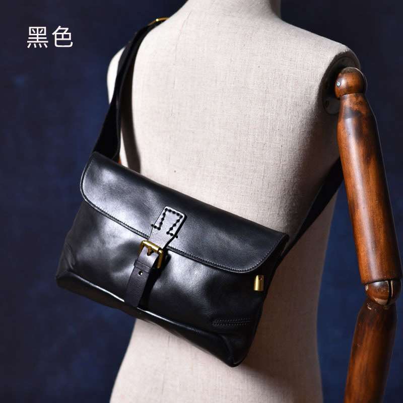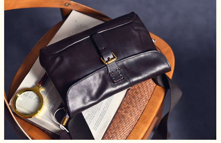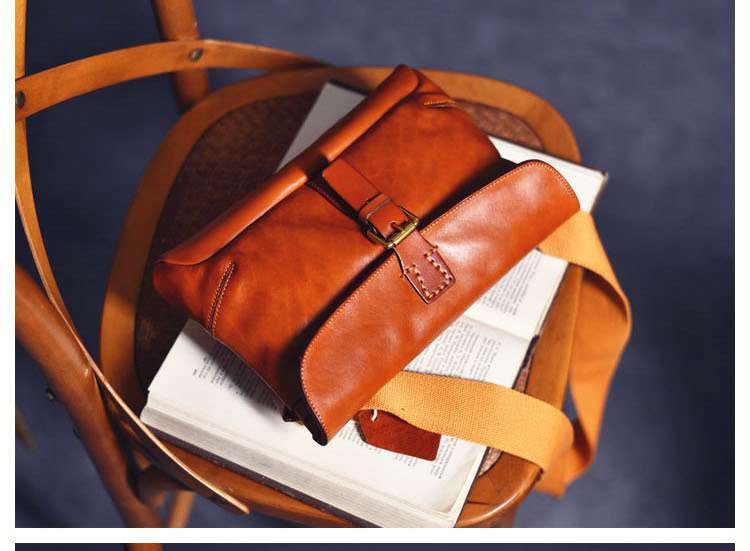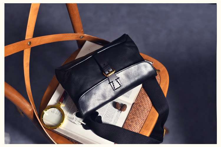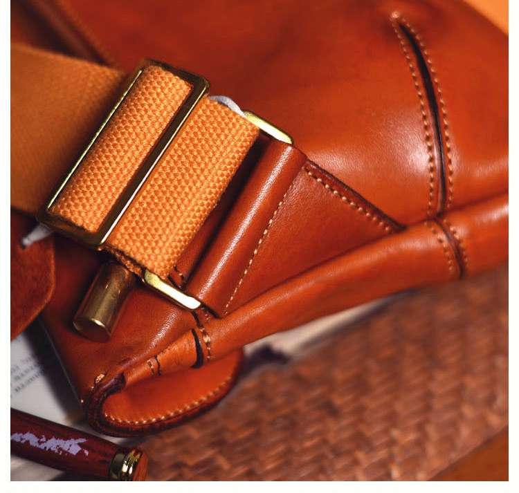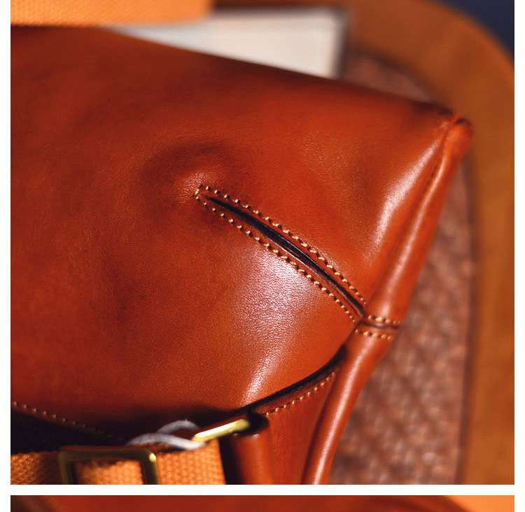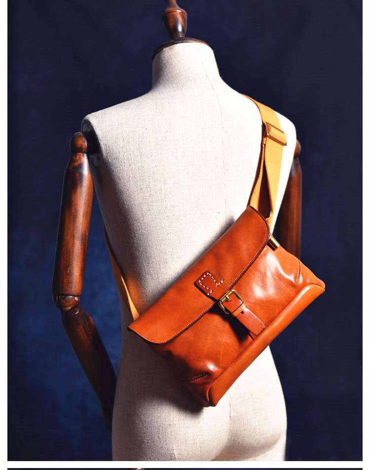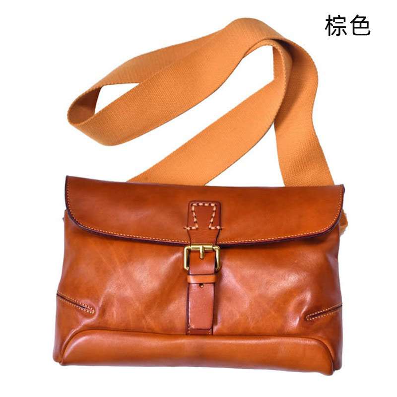復古植鞣牛皮寬肩帶胸包斜跨包 頭層牛皮斜背包