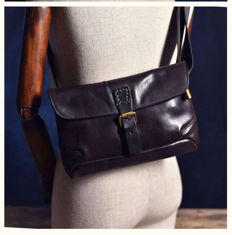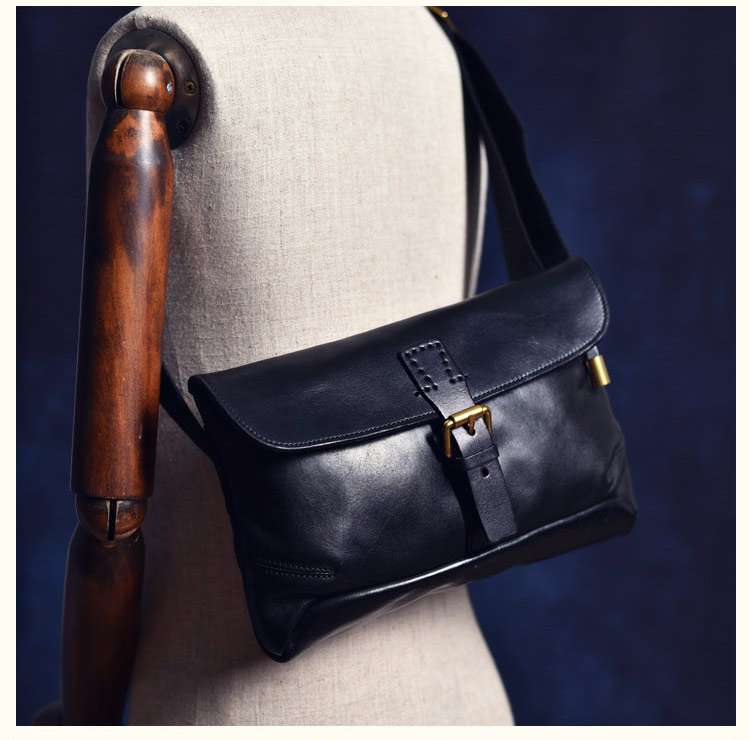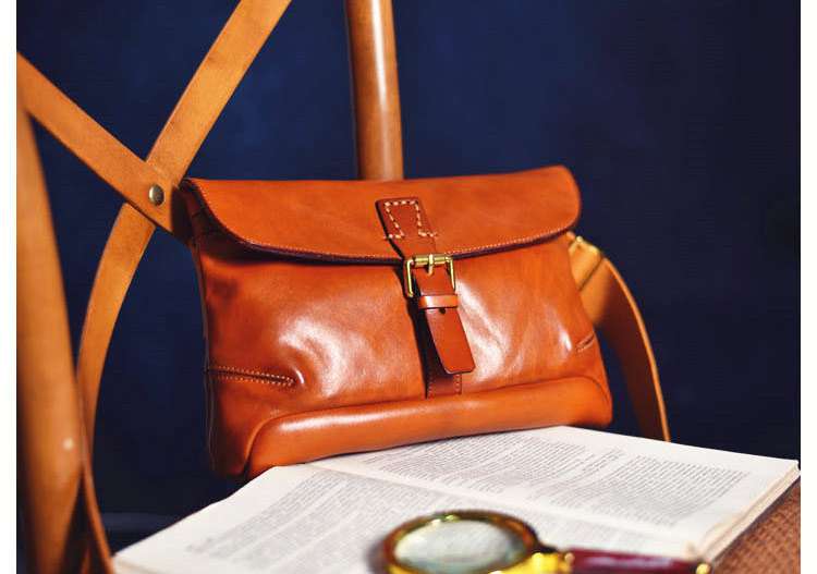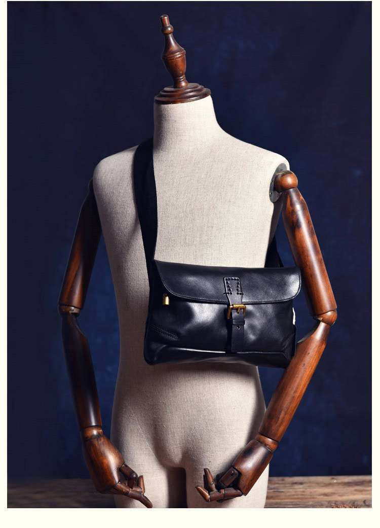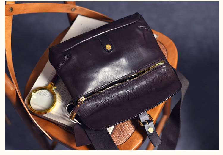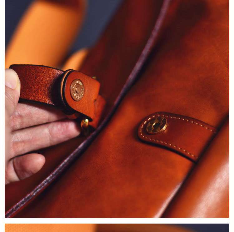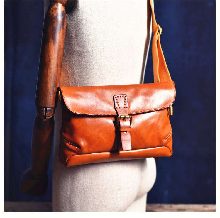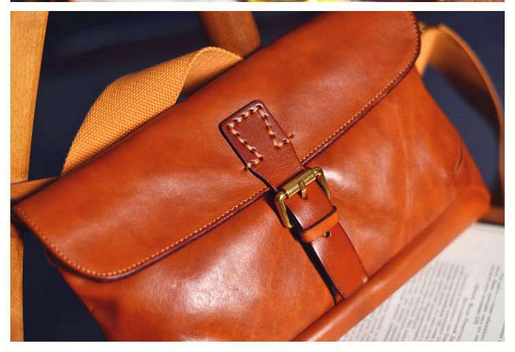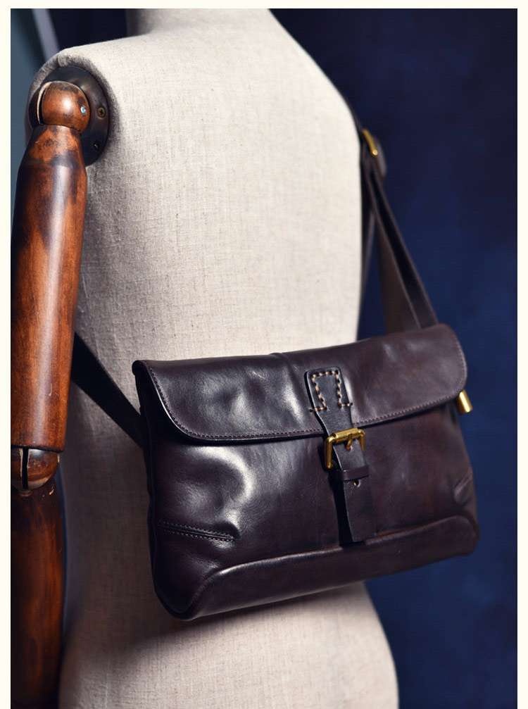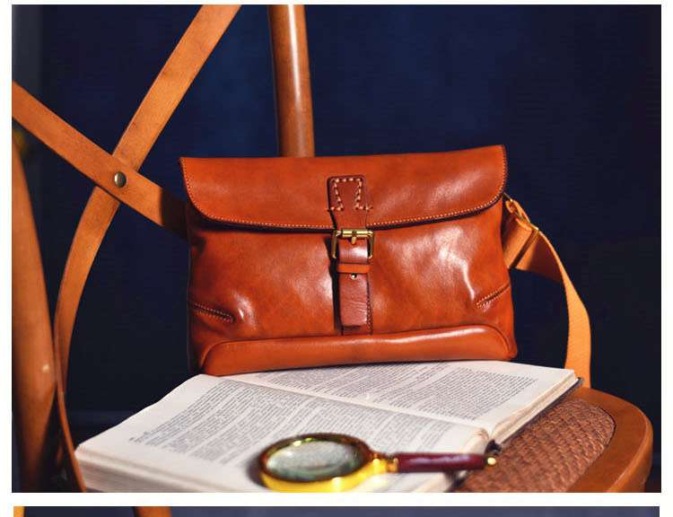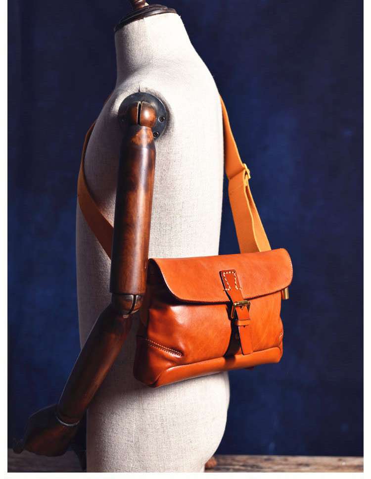 復古植鞣牛皮寬肩帶胸包斜跨包 頭層牛皮斜背包