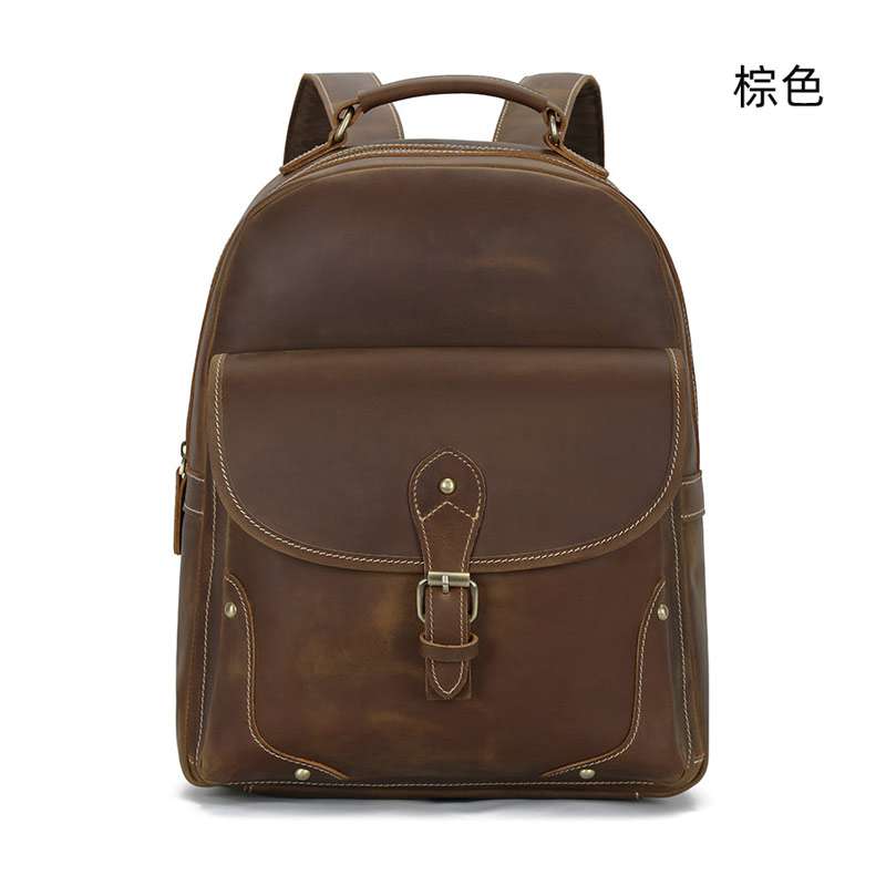 復古瘋馬皮後背包 歐美真皮雙肩包