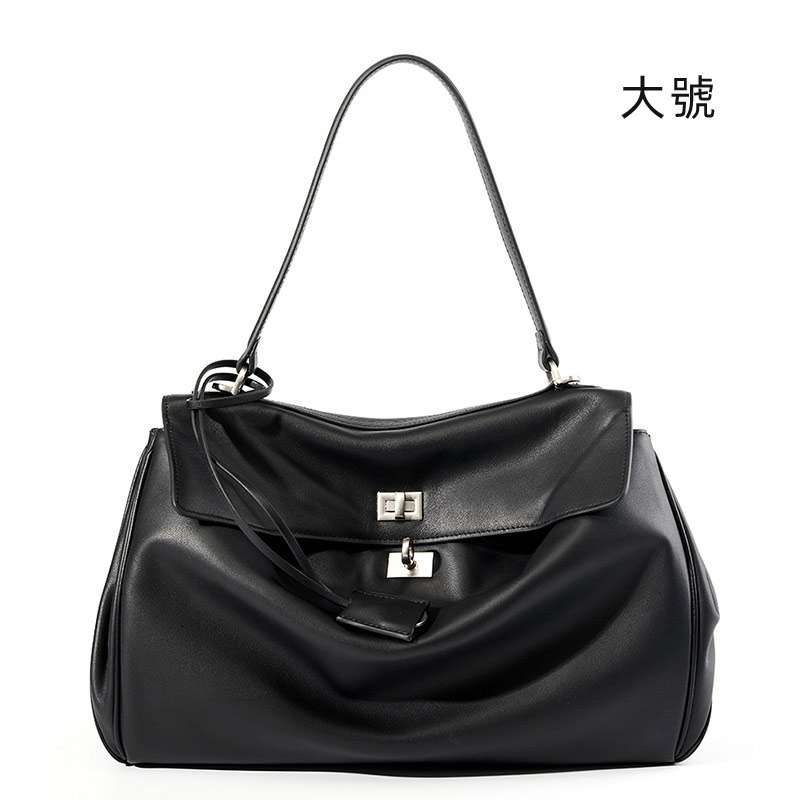 大容量光滑小牛皮單肩手提鎖扣包 通勤腋下包包單肩背包