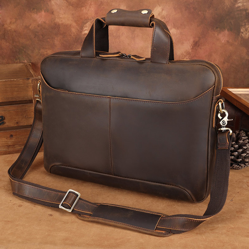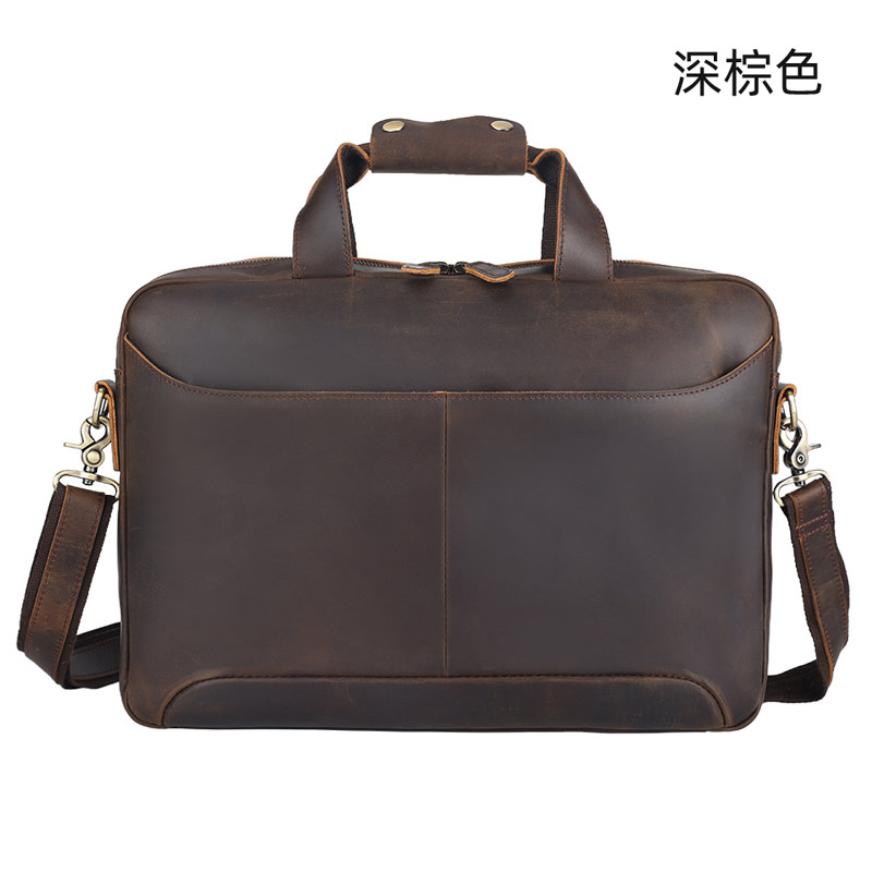 歐美復古瘋馬皮商務15.6吋筆電包 頭層牛皮公事包