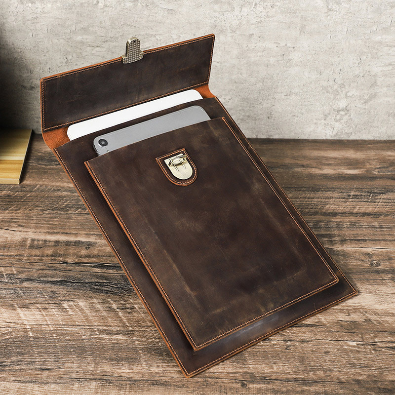 瘋馬皮插扣翻蓋式頭層牛皮ipad 11寸平板保護套皮套