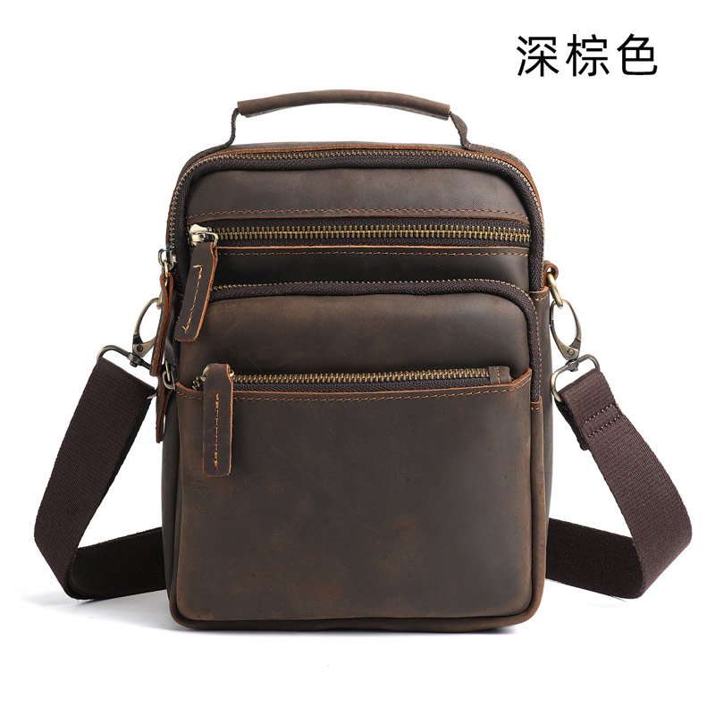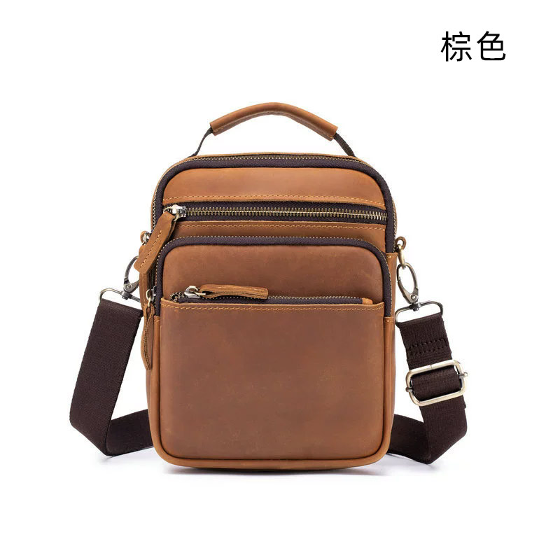 復古瘋馬皮男士斜背包 頭層牛皮單肩斜挎背包