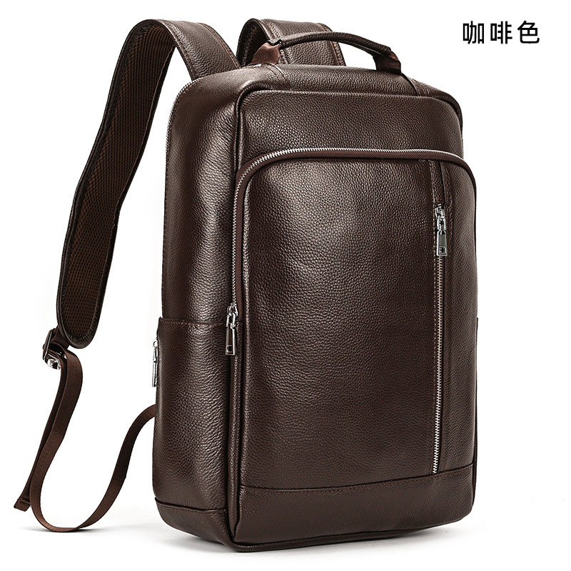 真皮雙肩背包 荔枝紋頭層牛皮15吋筆電背包 戶外男款雙肩包