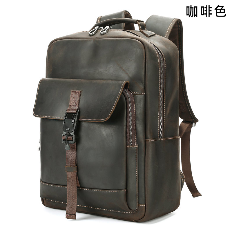 歐美復古瘋馬皮後背包 頭層牛皮旅行包 瘋牛皮男士後背包