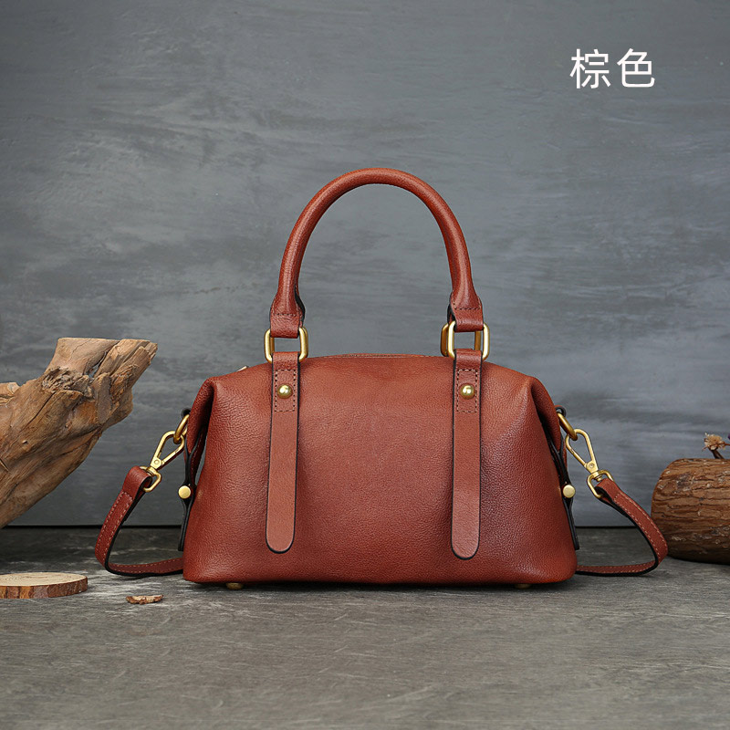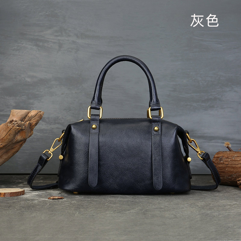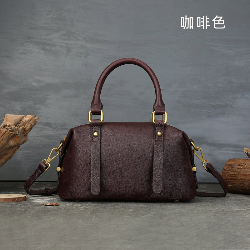 復古波士頓枕頭包 真皮包包 頭層牛皮手提包
