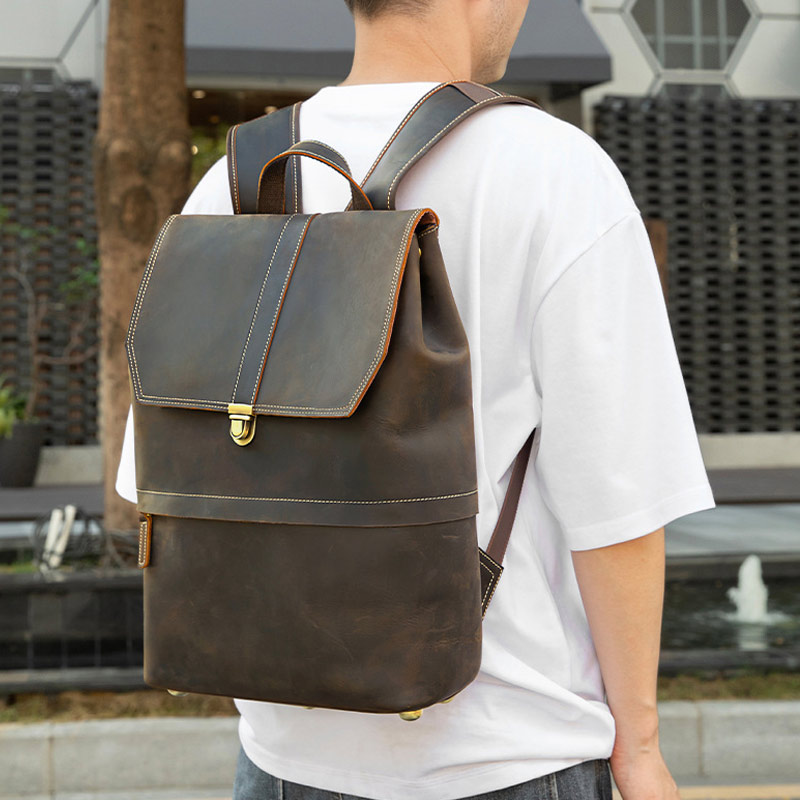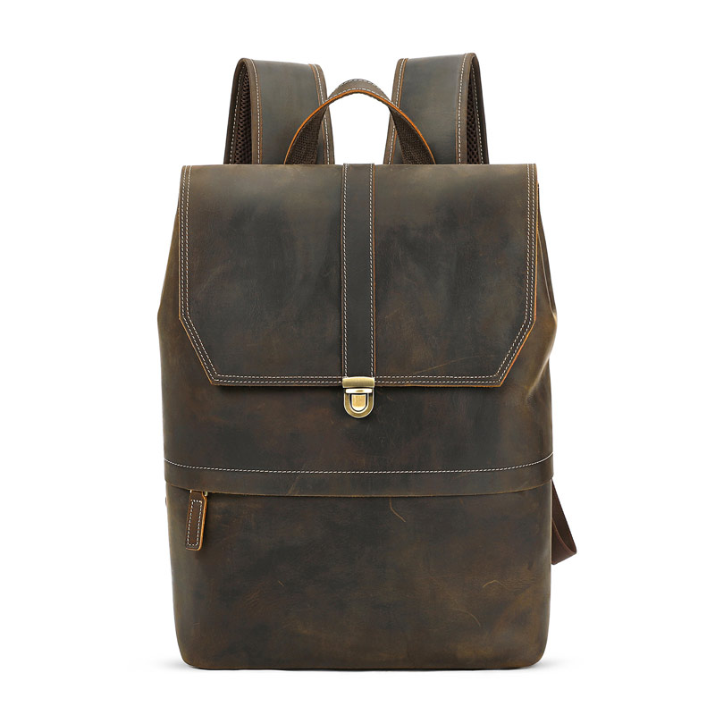 歐美新款復古瘋馬皮後背包 頭層牛皮旅行包 男士後背包