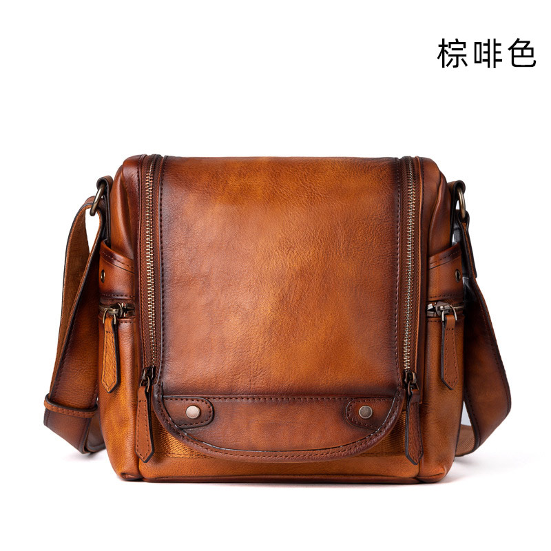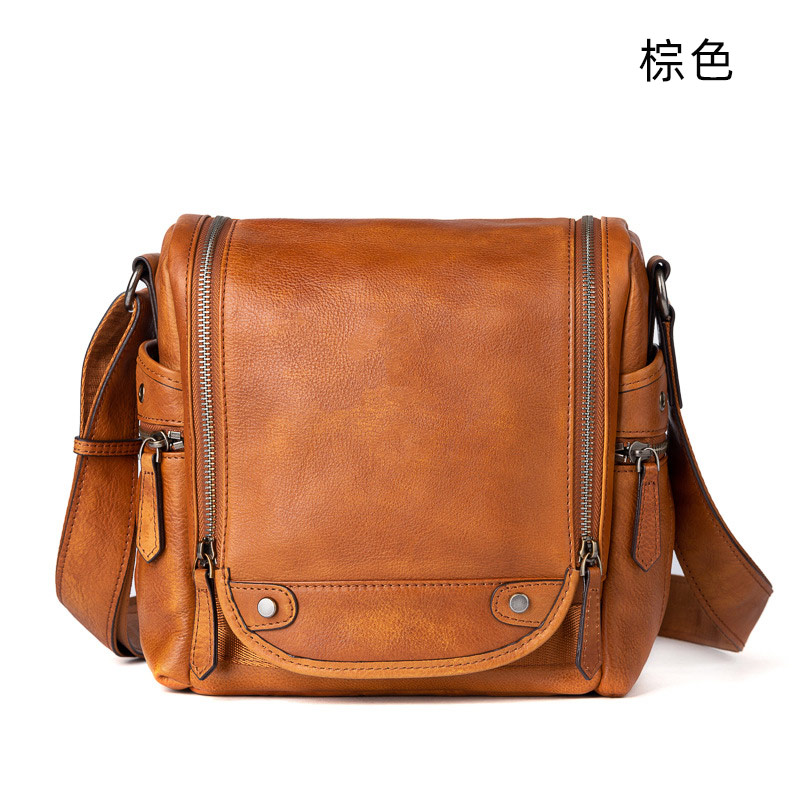 復古植鞣牛皮斜背包 頭層牛皮斜跨包