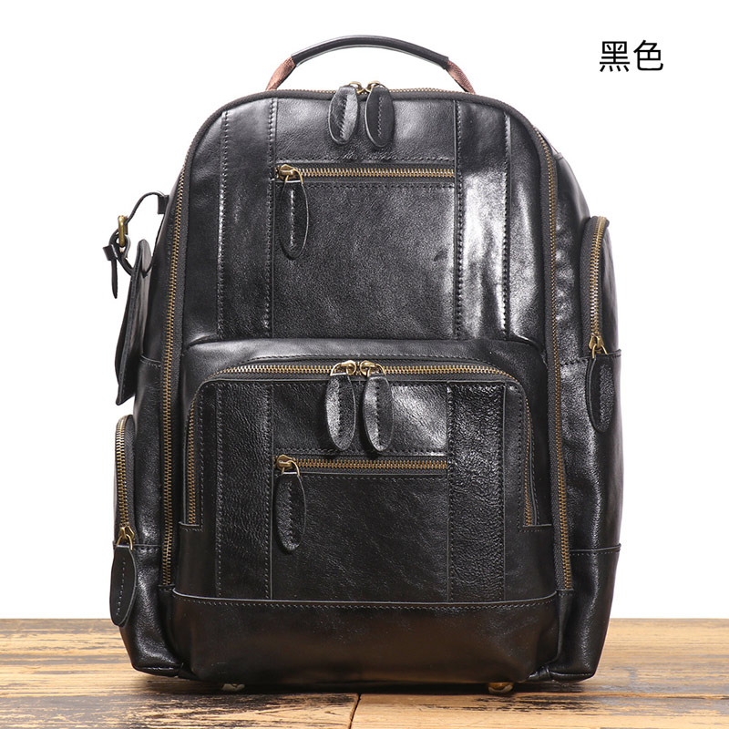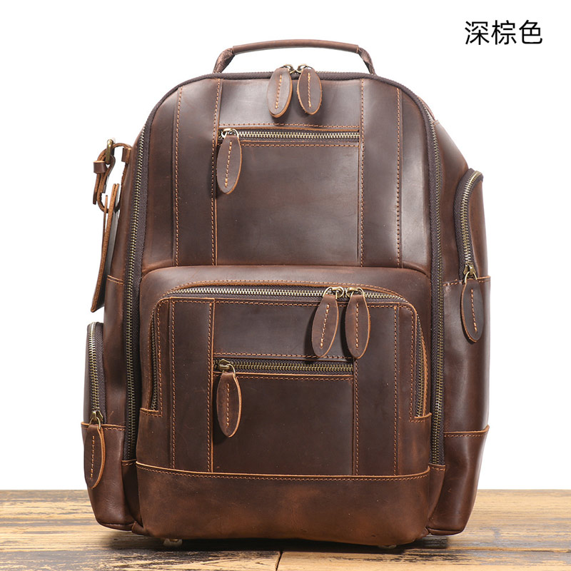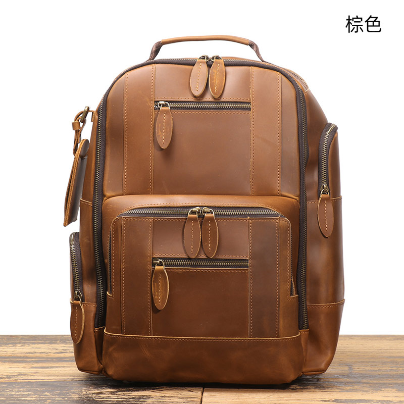 歐美復古瘋馬皮後背包 頭層牛皮旅行包 瘋牛皮男士旅行背包