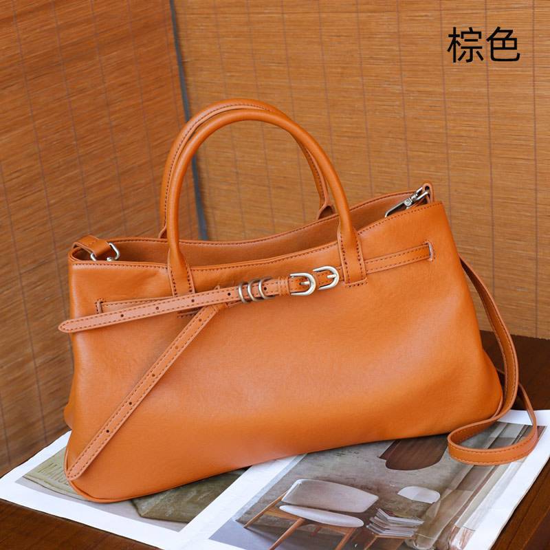 女式真皮斜背包托特包 頭層植鞣牛皮大包包